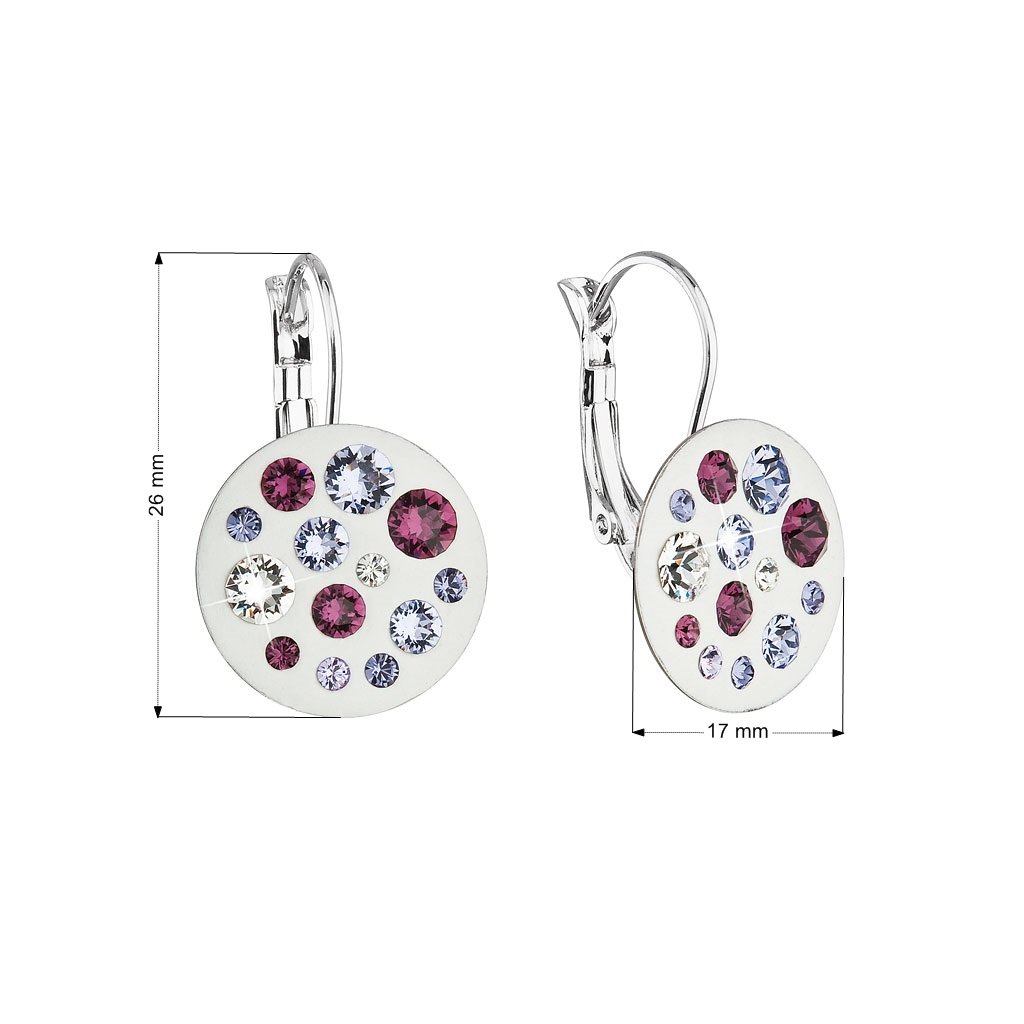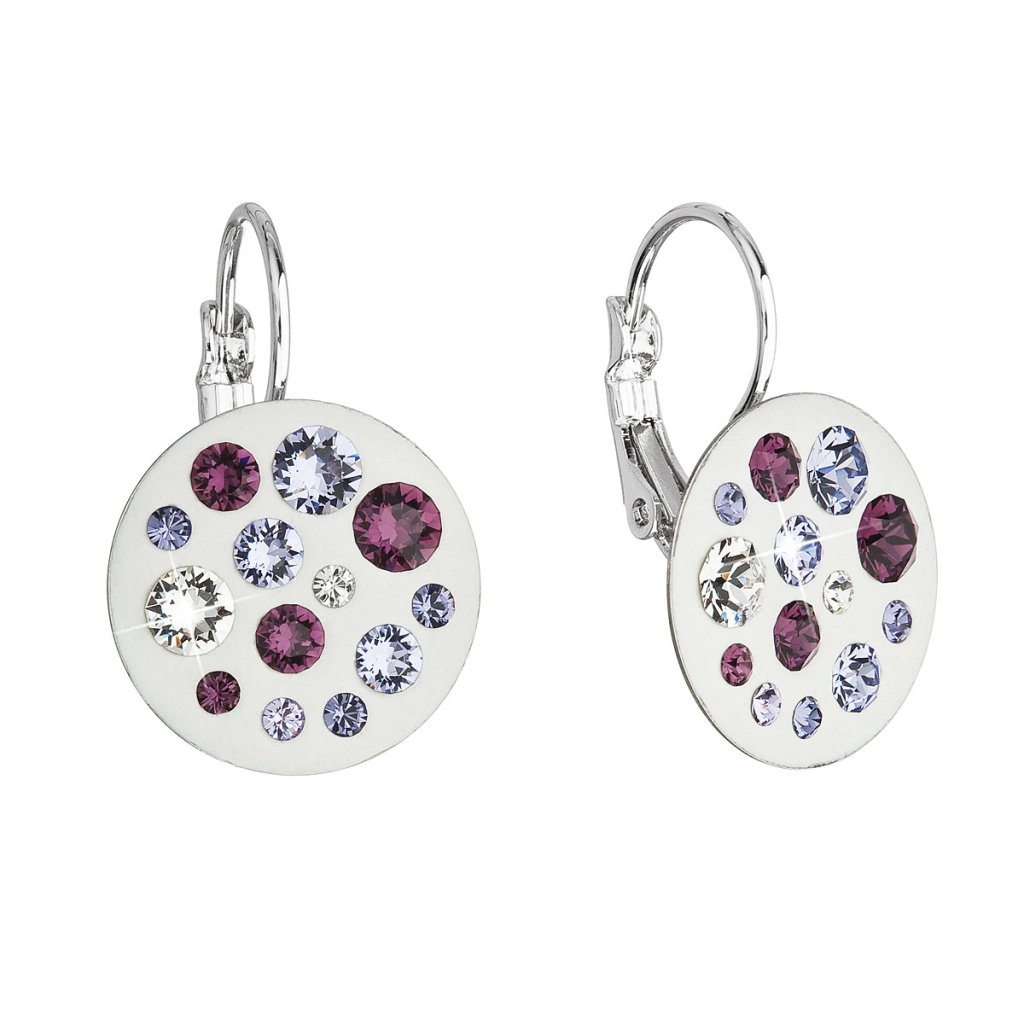 Okrúhle náušnice sú zdobené mixom fialovo-bielych kryštálov Swarovski . Bižutérne náušnice 51034.3 sa zapínajú na klapku. Neobsahujú žiadne množstvo niklu a sú teda vhodným darčekom aj pre alergikov.