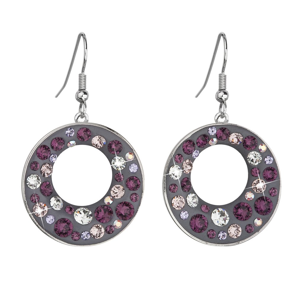 Okrúhle náušnice sú zdobené mixom fialových kryštálov Swarovski na tmavom povrchu . Bižutérne náušnice 51040.3 navlečiete jednoducho do vášho ucha pomocou háčika. Neobsahujú žiadne množstvo niklu a sú teda vhodným darčekom aj pre alergikov.