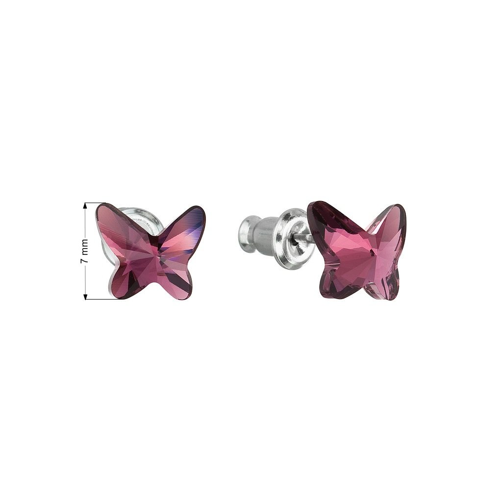 Parametre bižutérnych náušníc so Swarovski kryštálmi fialový motýľ 51048.3