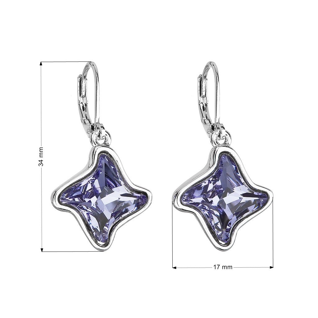 Náušnice majú dĺžku 34 mm a zapínajú sa na klapku . Šperk je zdobený hviezdičkovým Swarovski kryštálom v modrej tanzanit farbe.