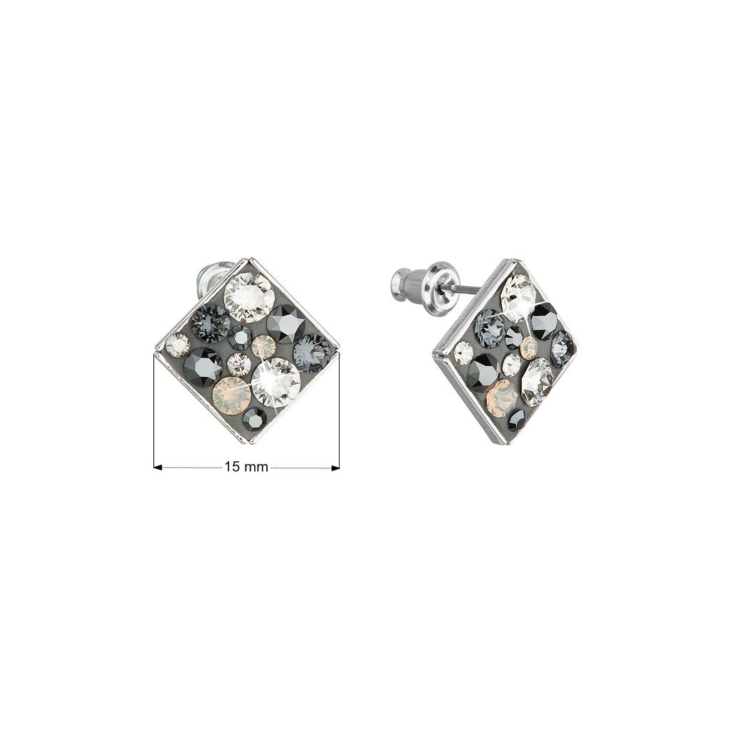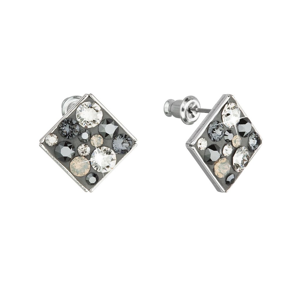 Náušnice bižutérie so Swarovski kryštálmi šedé kosoštvorec 51032.5 silver night