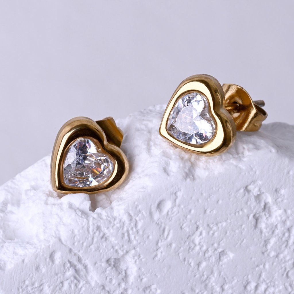 Náušnice srdiečka s kryštálom 41029.1 gold