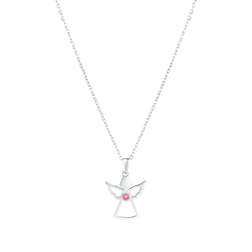 Oceľový náhrdelník anjel so Swarovski kryštálmi ružový 42043.3