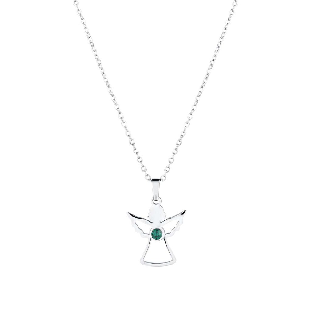 Oceľový náhrdelník anjel so Swarovski kryštálmi zelený 42043.3
