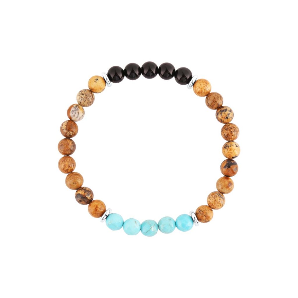 Oceľový náramok s minerálnymi kameňmi achát, jaspis, tyrkys 43080.3