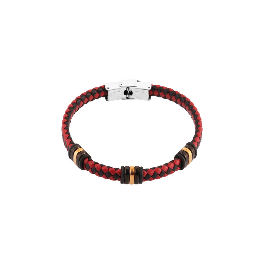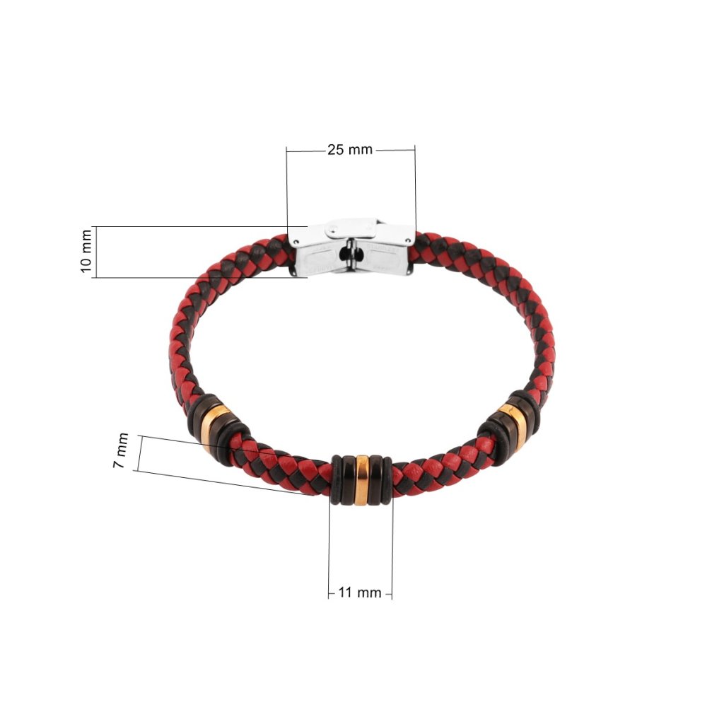 Náramok je vhodným darčekom pre elegantných mužov a je tvorený zapletenými pásikmi z čiernej a červenej PU kože do okrúhleho prierezu .