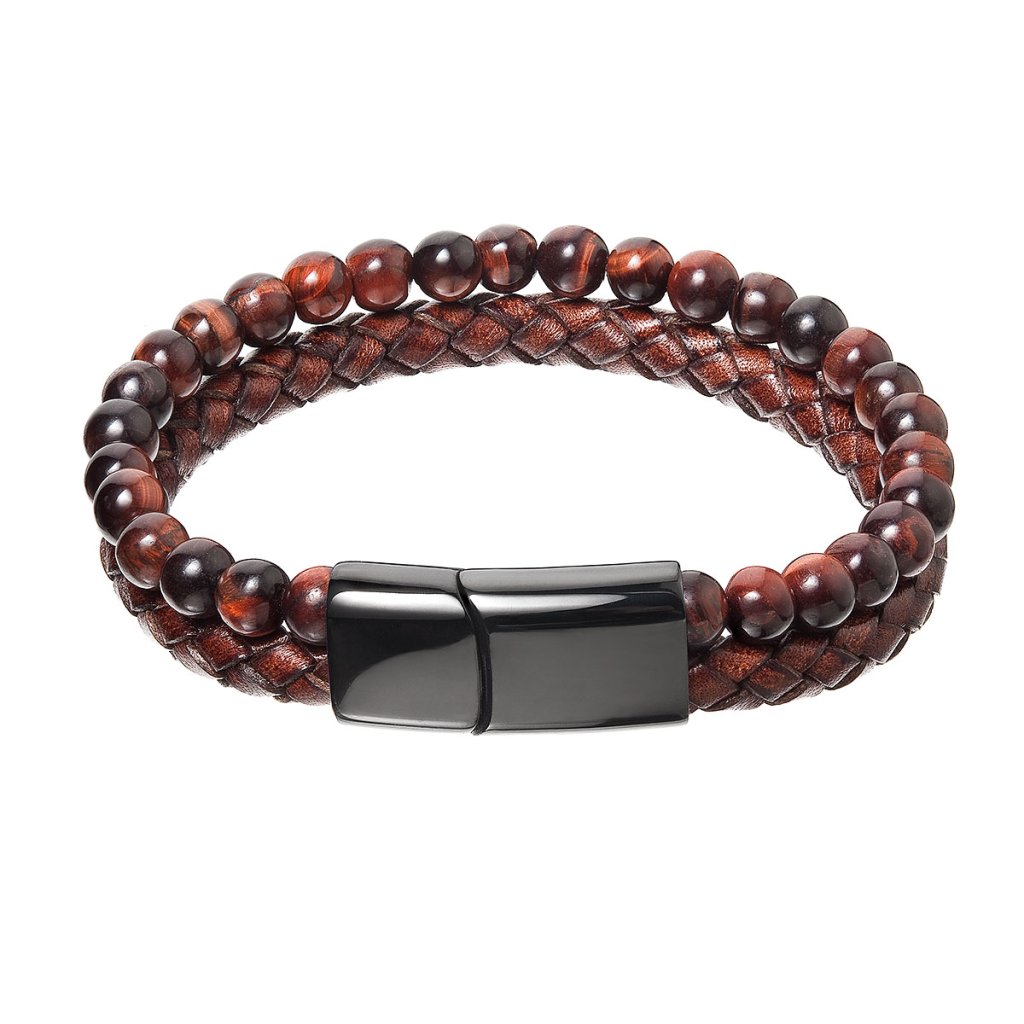 - dvojitý pánsky náramok z koženky a kameňov tigrieho oka