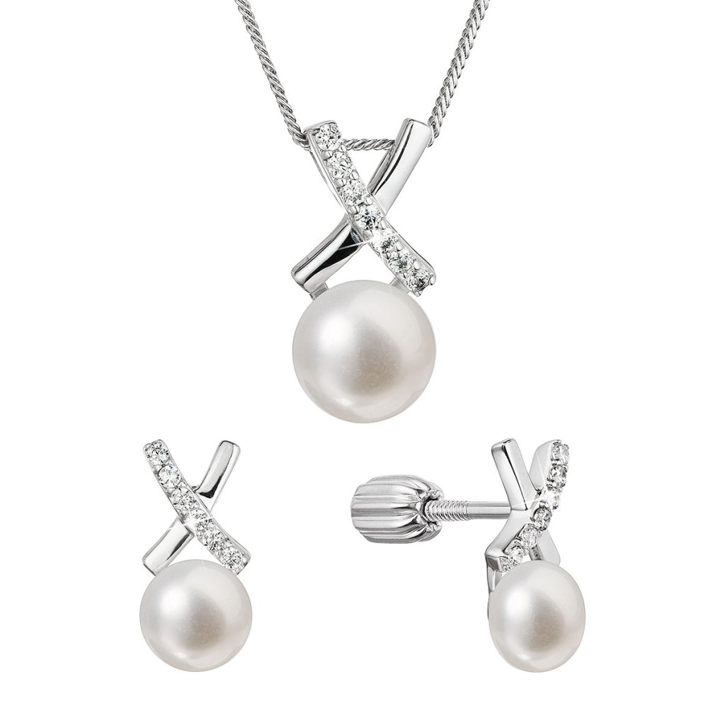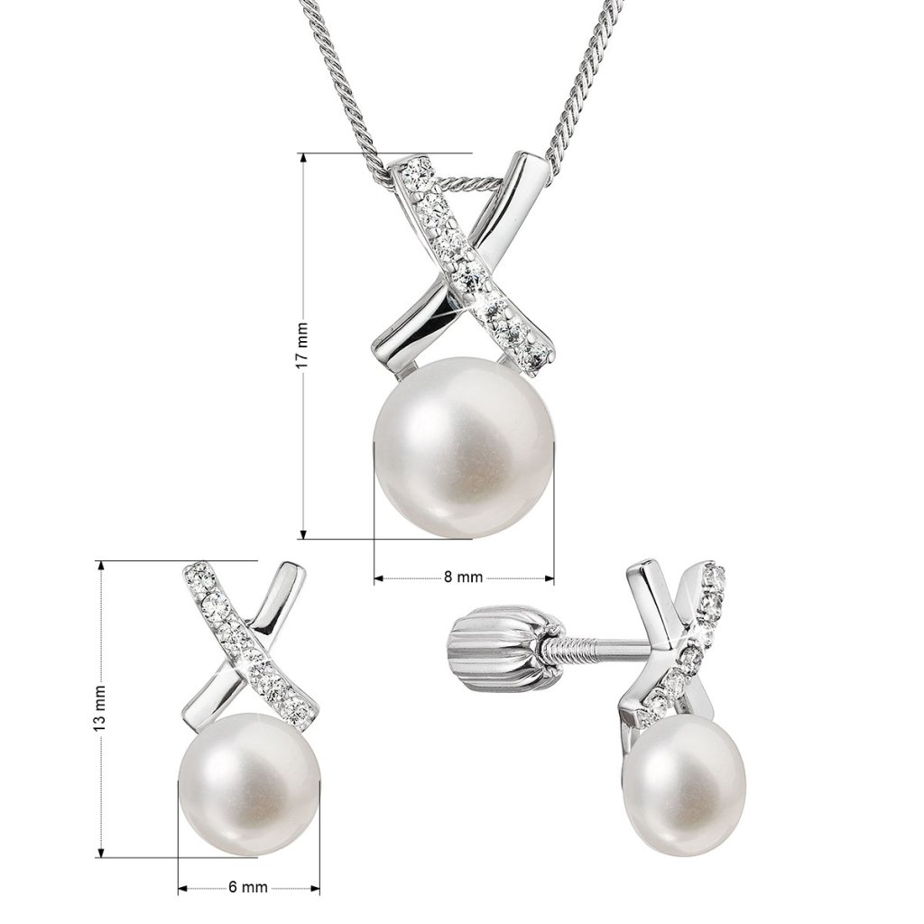 Perlová súprava "X" so zirkónmi a bielou riečnou perlou 29068.1B