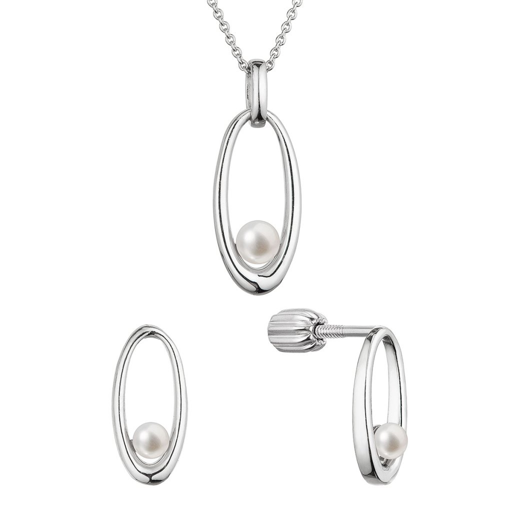Perlová súprava ovál s bielou riečnou perlou 29076.1B