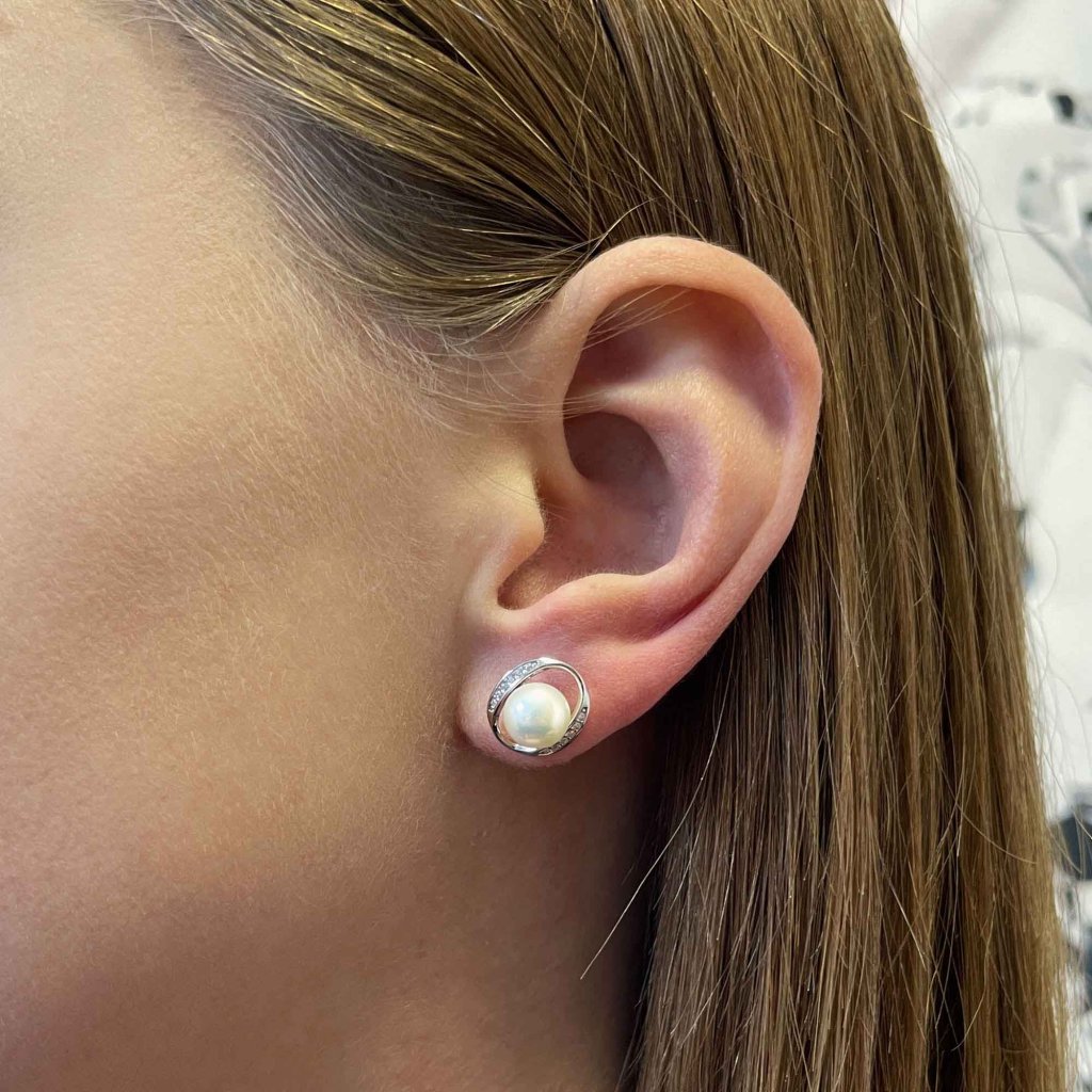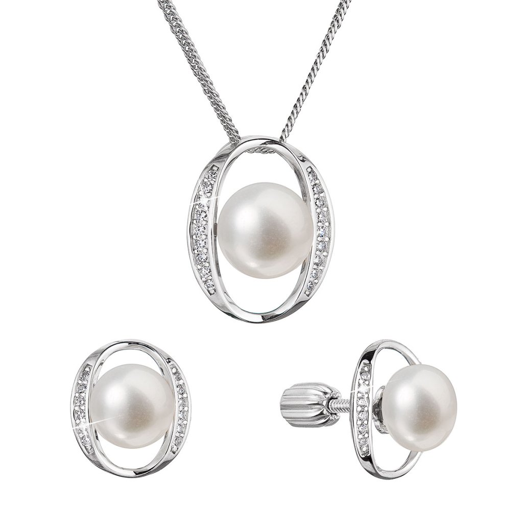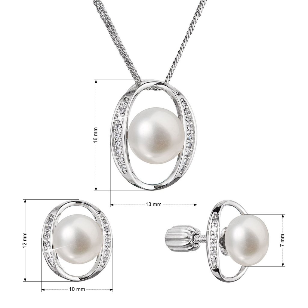 Perlová súprava ovál s riečnou perlou a zirkónmi biela 29049.1B