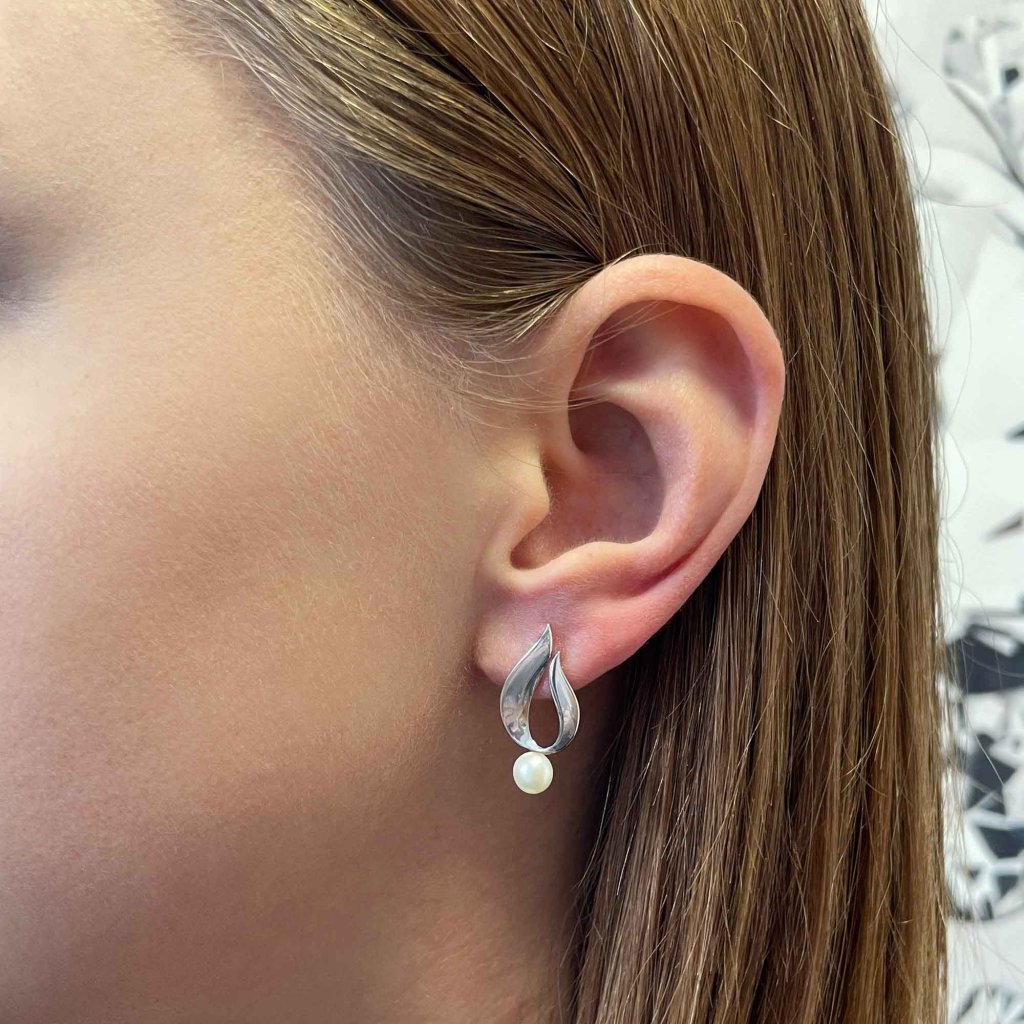 Strieborná súprava šperkov v podobe plamienkov prináša do vášho vzhľadu hru elegantných kriviek a prirodzenej krásy . Každý plamienok zdobí pravé riečne perly, dodávajúce šperkom dojem jemného luxusu.