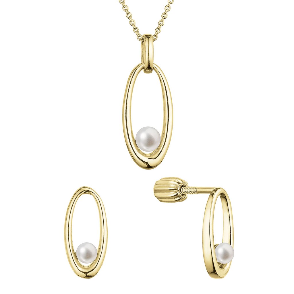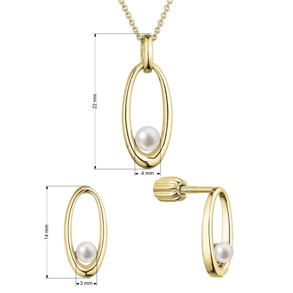 Perlová súprava pozlátený ovál s bielou riečnou perlou 29076.1B