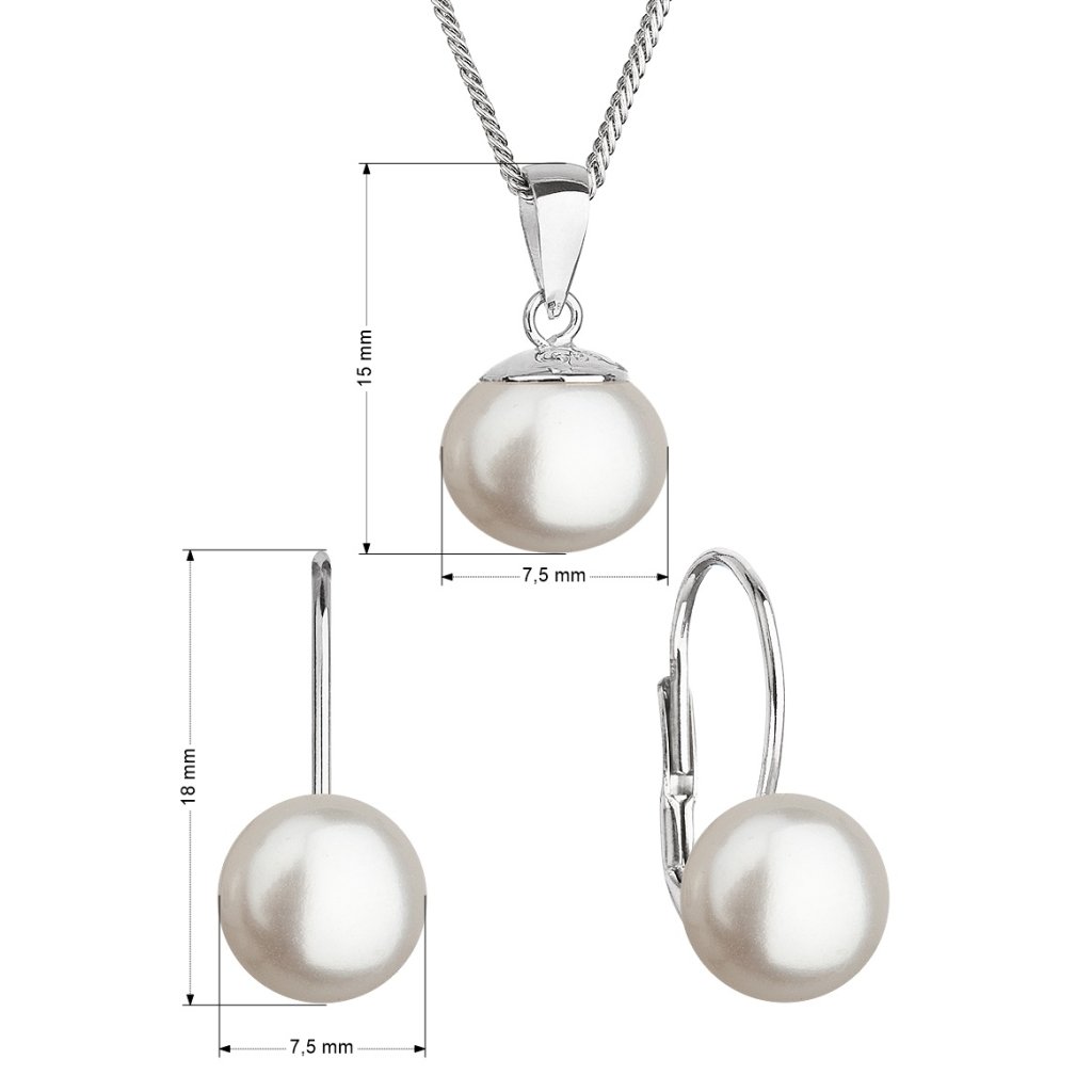 Súprava z bielych riečnych perál obsahuje náušnice a prívesok na striebornej retiazke . Sladkovodné perly, ktorými sú šperky zdobené, majú kvalitu AA a priemer 7-7,5 mm. Šperky sú vyrobené zo striebra o rýdzosti 925/1000 vrátane povrchovej úpravy ródiom. Súpravu sa nemusia báť zaobstarať ani alergici, pretože šperky neobsahujú žiadny prídavok niklu. Náušnice zapnete na klapku , ktorá ich spoľahlivo ochráni proti nechcenej strate.