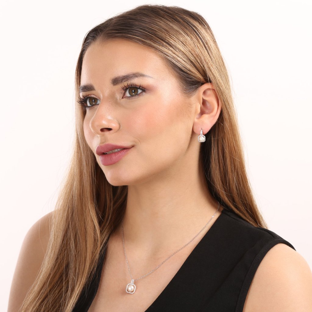Luxusná štvorcová perlová súprava, ktorej výrazné zirkónové zdobenie rozžiari každú slávnostnú príležitosť.