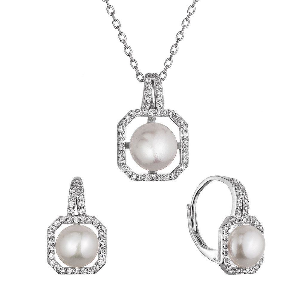 Perlová súprava s bielou riečnou perlou a zirkónmi štvorec 29083.1