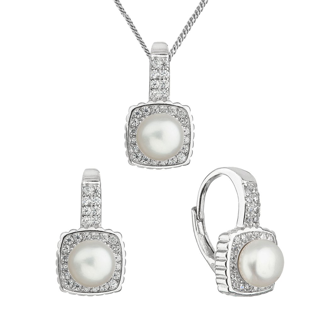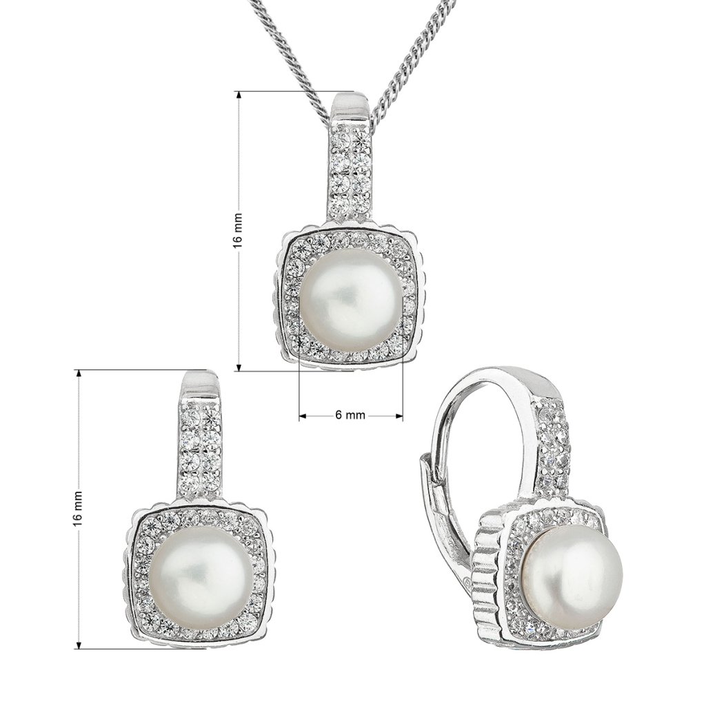 Perlová súprava s bielou riečnou perlou a zirkónmi štvorec 29084.1