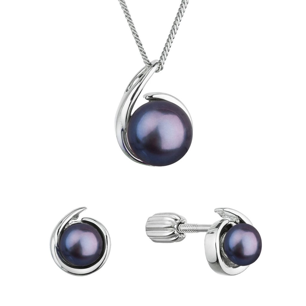 Perlová súprava slza s tmavou riečnou perlou 29063.3B
