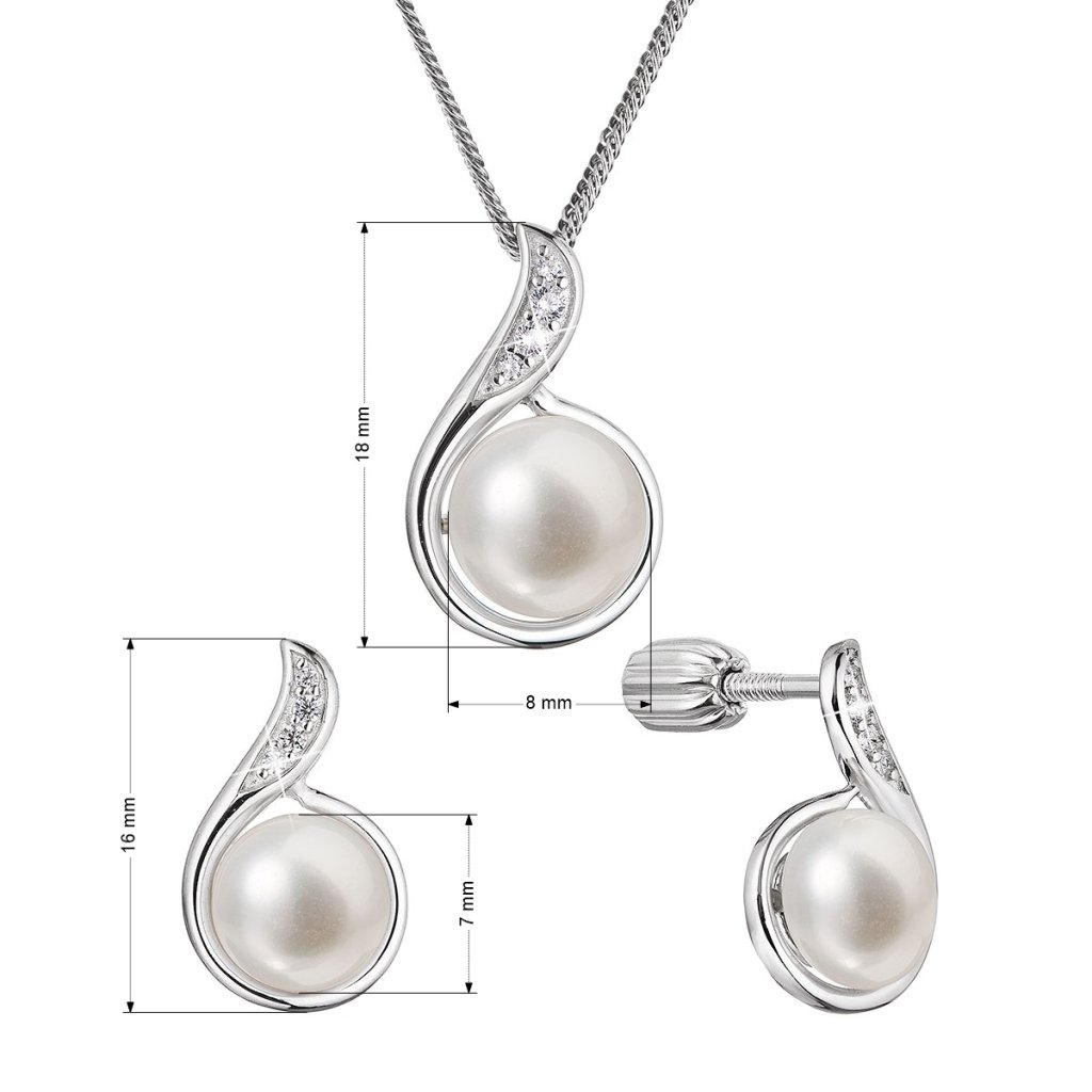 Perlová súprava slzička s riečnou perlou a zirkónmi biela 29050.1B