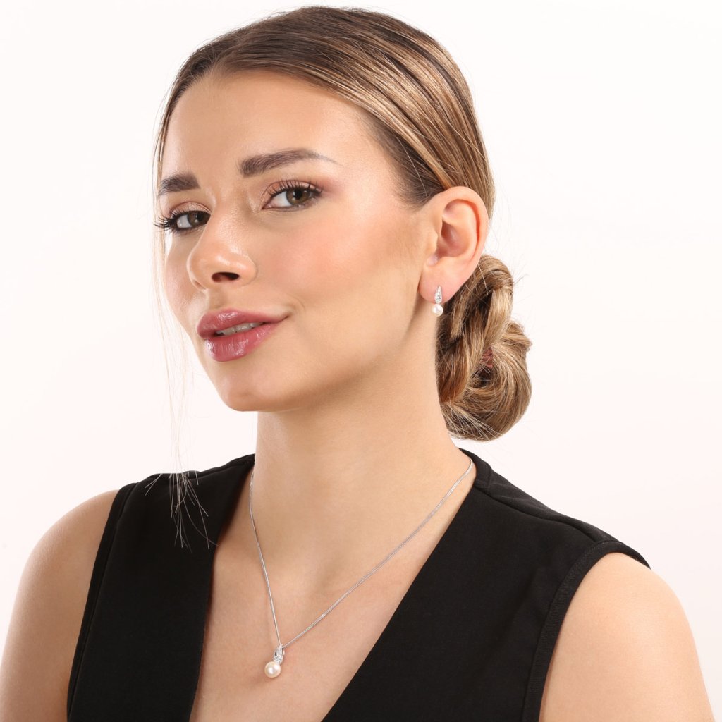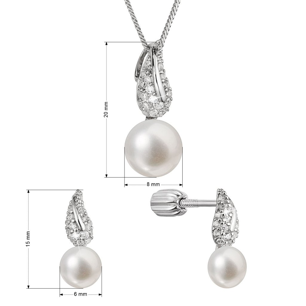 Perlová súprava so zirkónmi a bielou riečnou perlou 29059.1B
