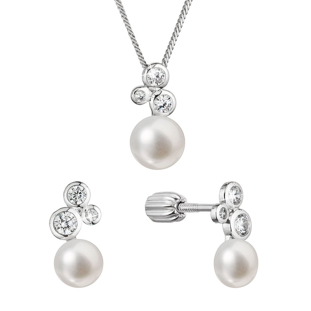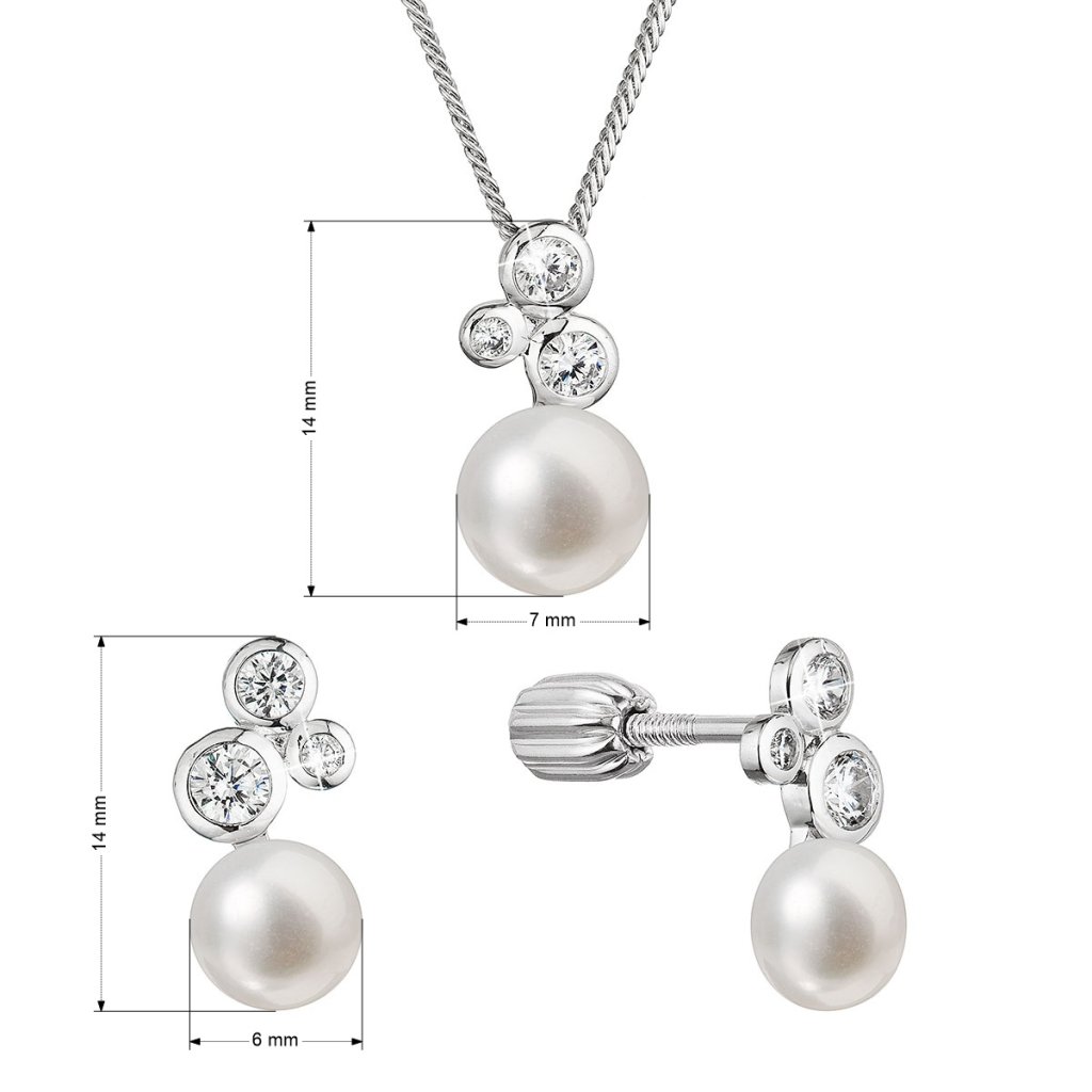Perlová súprava so zirkónmi a bielou riečnou perlou 29062.1B