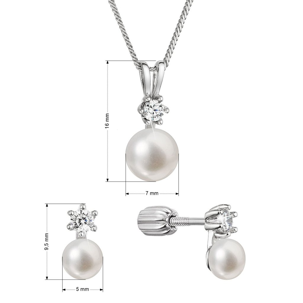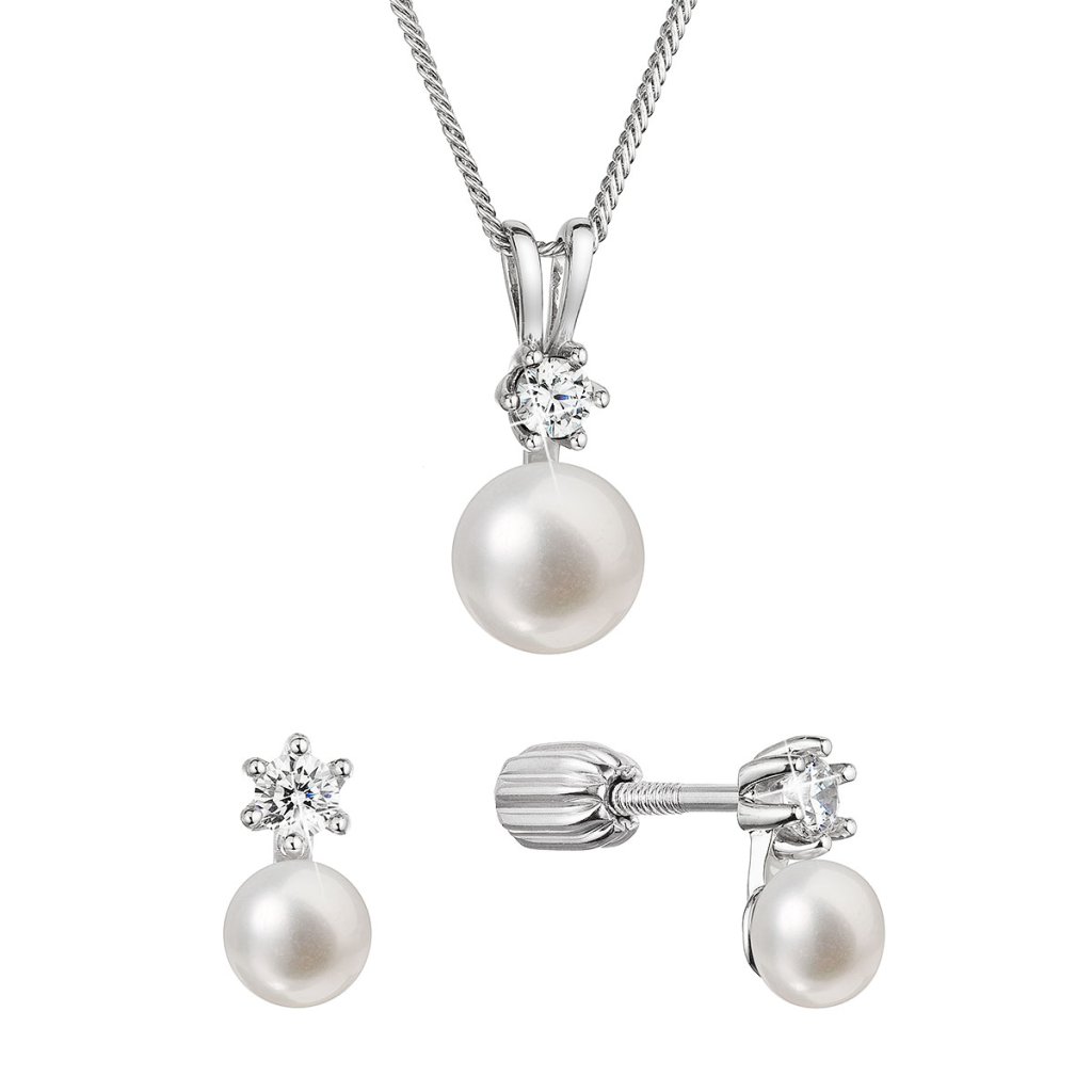 Perlová súprava so zirkónmi a bielou riečnou perlou 29073.1B