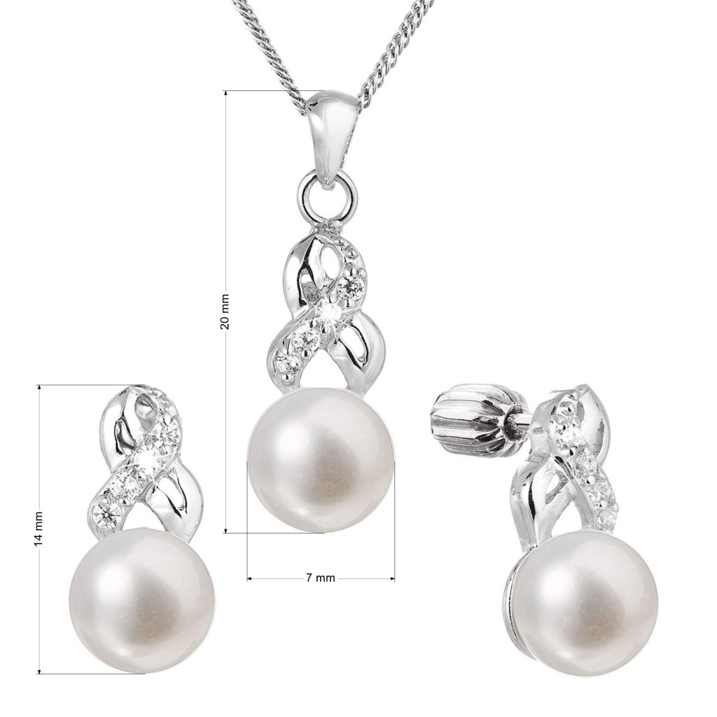 Súprava šperkov obsahuje náušnice a prívesok s retiazkou. Šperky sú zdobené riečnymi perlami najvyššej kvality AAA , ktoré ešte navyše dopĺňajú nádherne sa trblietajúce priezračné zirkóny. Šperky sú vyrobené zo striebra rýdzosti 925/1000, ktoré prešlo povrchovou úpravou ródiom. Striebro neobsahuje nikel , a tak je súprava vhodná aj pre alergikov. Náušnice sa zapínajú na balónik, ktorý ich spoľahlivo ochráni proti nechcenej strate.