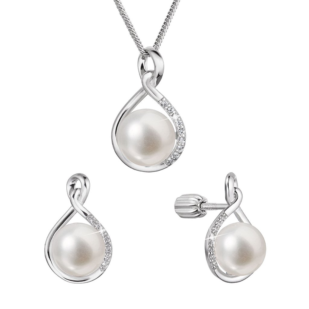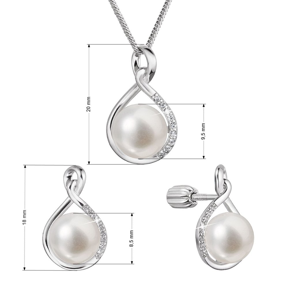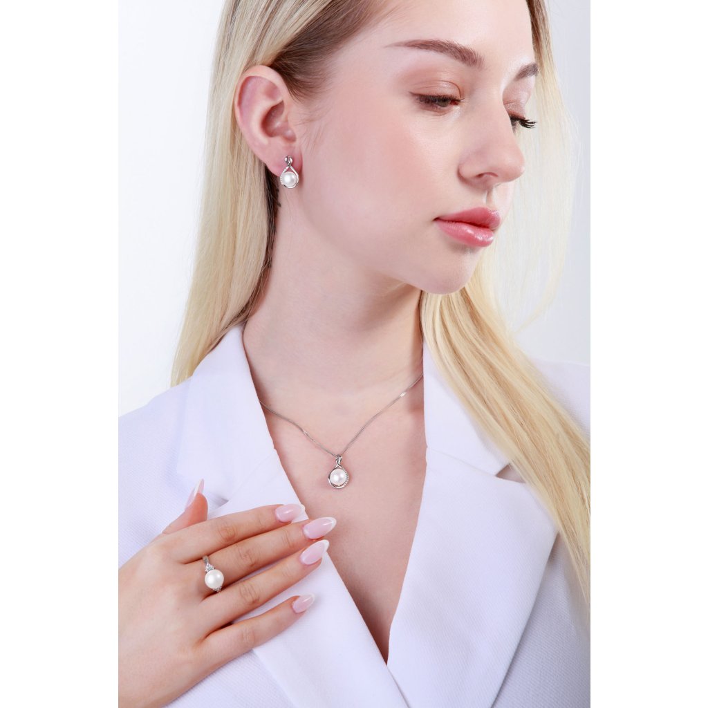 Doplňte svoj outfit originálnou perlovou súpravou .Šperky sú zdobené bielymi sladkovodnými perlami patriace do kategórie kvality AA . Perličky majú priemer 8,5 – 9,5 mm. Súprava je vyrobená zo striebra o rýdzosti 925/1000 vrátane povrchovej úpravy ródiom. Súprava šperkov 29058.1B obsahuje náušnice so zapínaním na balónik a retiazku s príveskom . Vzhľadom na to, že šperky neobsahujú nikel , nemusíte sa obávať žiadne alergické reakcie.