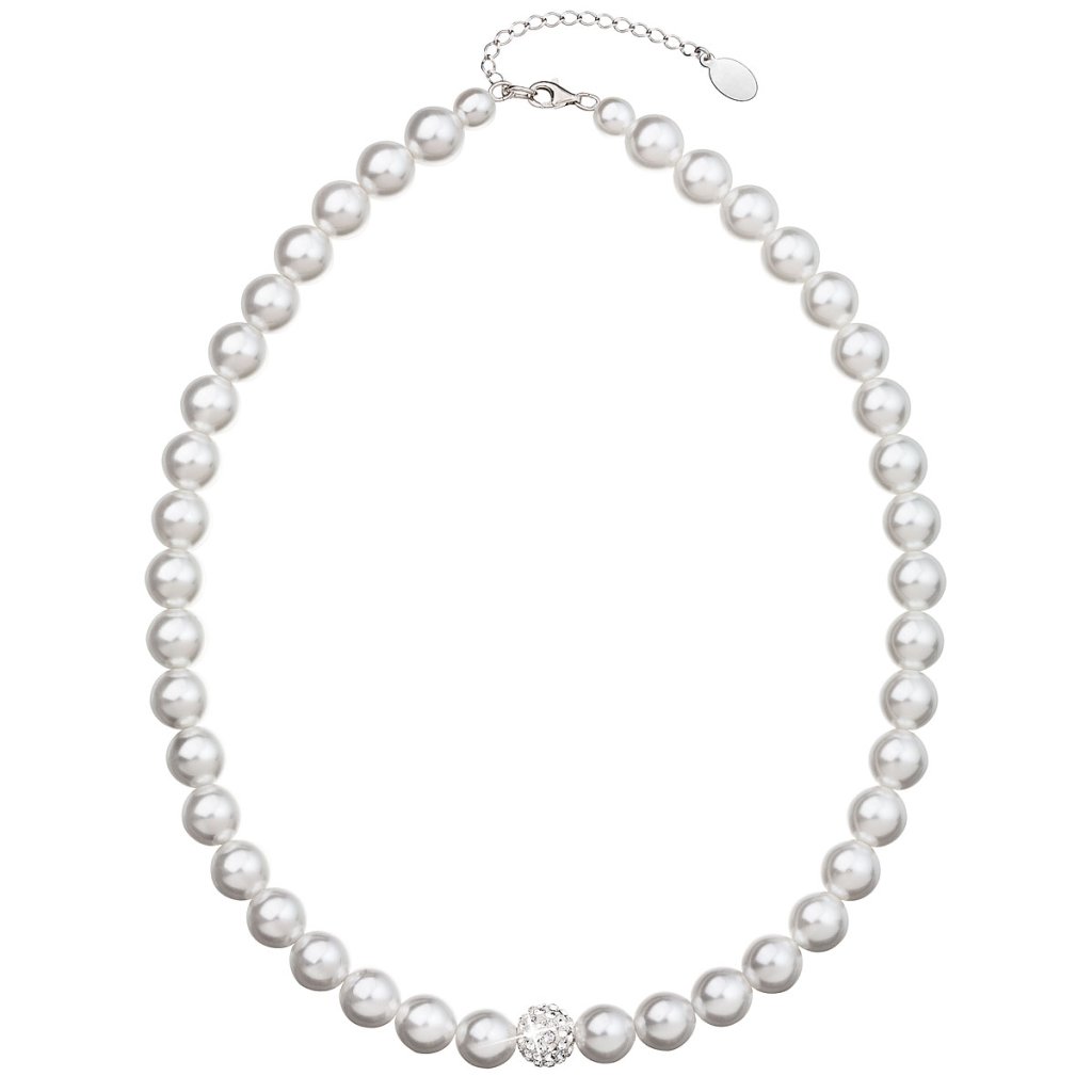 Perlový náhrdelník 32011.1 v dĺžke 45 cm je navlečený z bielych perál, medzi ktoré je vložená gulička vysadená mnohými Swarovski kryštálmi v bielej farbe. Na zapínanie náhrdelníka bolo použité striebro rýdzosti 925/1000, ktoré prešlo úpravou ródiom. Ródium striebro ochráni proti sčernaniu, zožltnutiu i poškriabaniu. Náhrdelník je vhodný aj pre alergikov , neobsahuje totiž nikel.