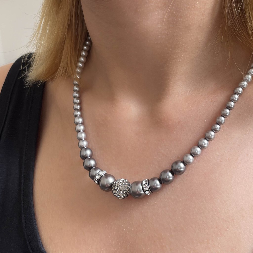 Doplňte svoje večerné šaty na ples zaujímavým doplnkom v podobe bielo-šedého perlového náhrdelníka.
