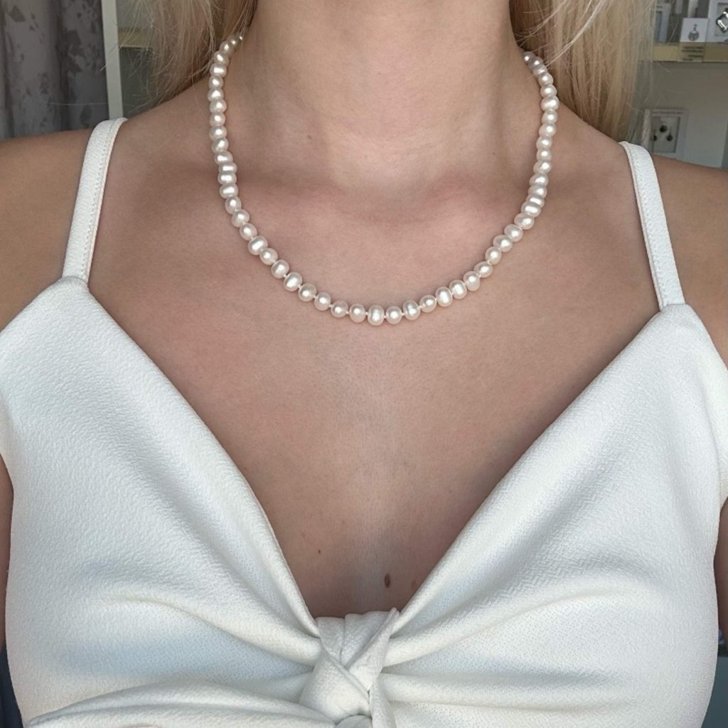 Perlový náhrdelník z riečnych perál so zapínaním z bieleho 14 karátového zlata 822001.1 biely
