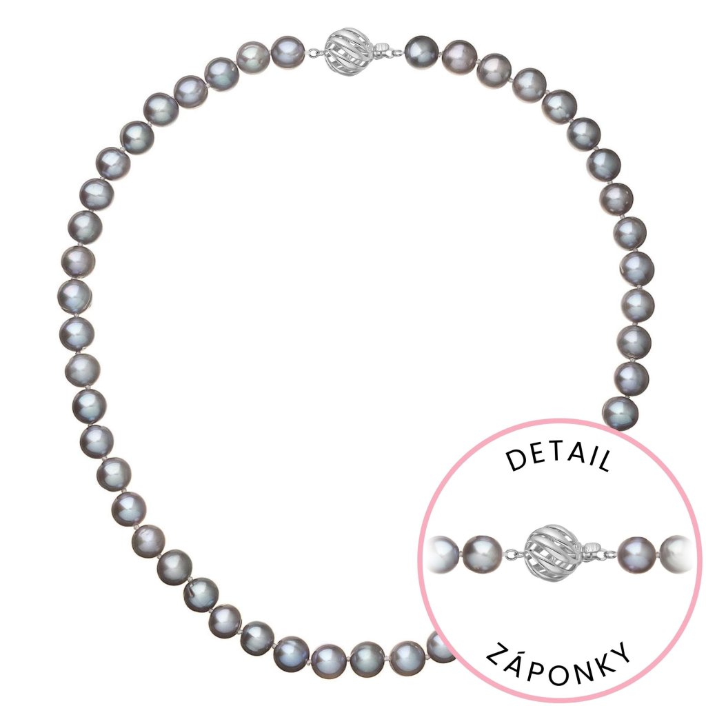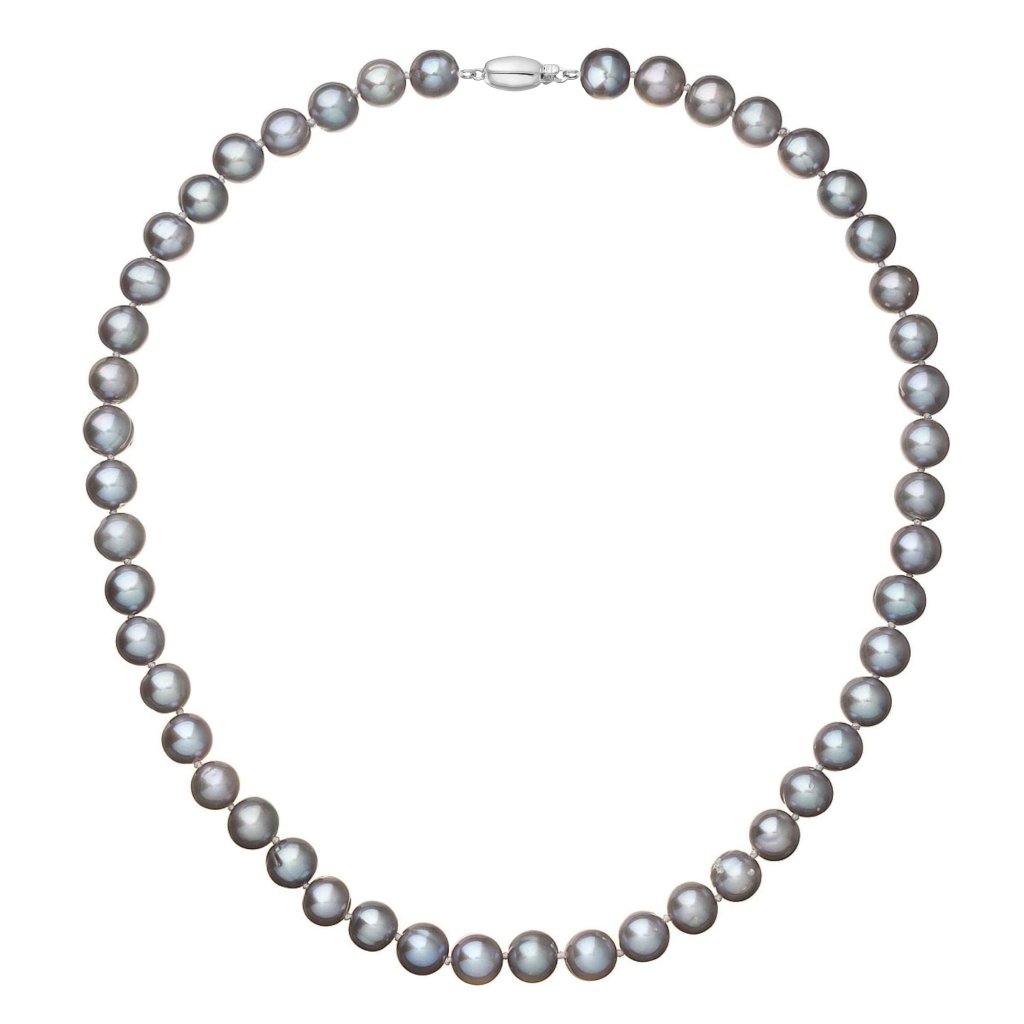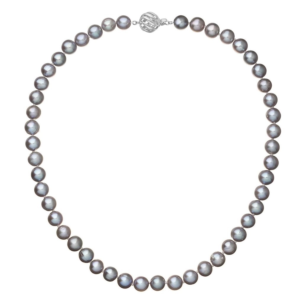 S náhrdelníkom z pravých sladkovodných kultivovaných riečnych perál budete v spoločnosti očarujúce! Jedinečný perlový náhrdelník 822028.3 doplnený o zlaté 14 karátové zapínanie bude vo Vašom dekolte neprehliadnuteľný. Náhrdelník je navlečený z pravých šedých riečnych perál kvality A a je zaistený uzlíkovou väzbou, ktorá zabraňuje posúvaniu a poškodeniu perál trením o seba a rovnako chráni perly pred rozsypaním, pokiaľ sa náhrdelník náhodou pretrhne.