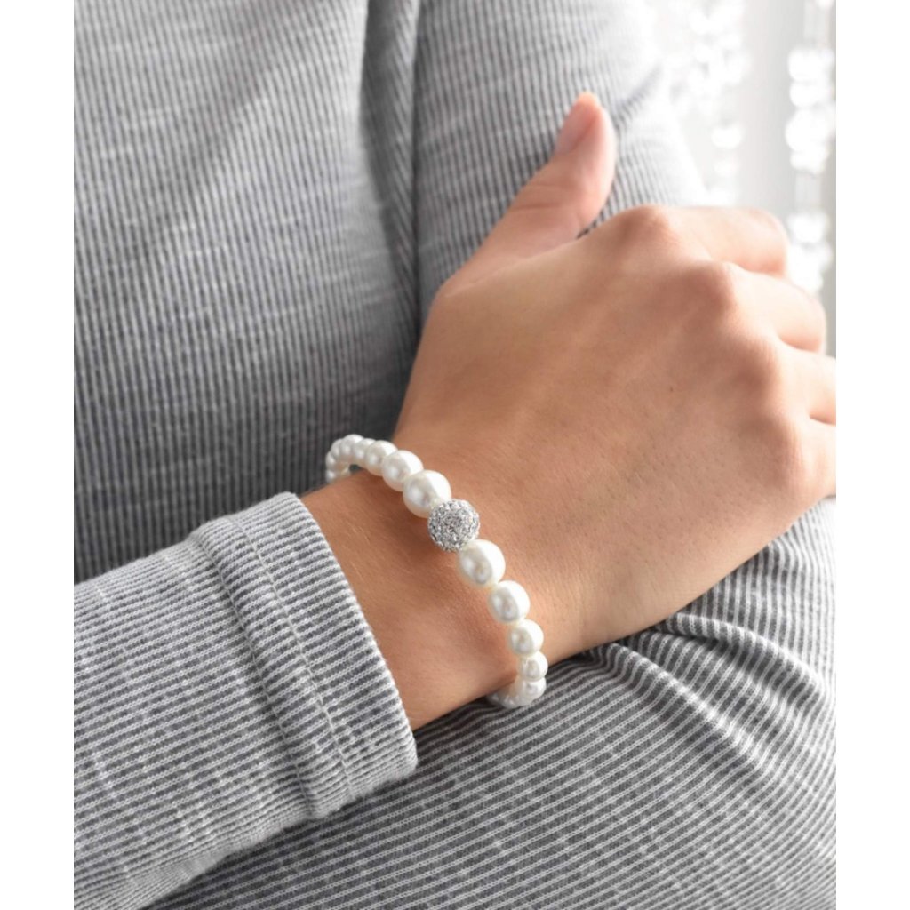 Perlový náramok nemusíte nosiť len na ples, hodí sa aj na bežné denné nosenie a krásne zvýrazní vašu ruku.Náramok 33063.1 je navlečený z rôzne veľkých bielych perál, medzi ktoré je vložená gulička bohato vysadená Preciosa kryštálmi. Kryštály sú v bielej farbe. Náramok neobsahuje žiadny prídavok niklu , môžu ho tak bez obáv z alergickej reakcie nosiť aj alergici.
