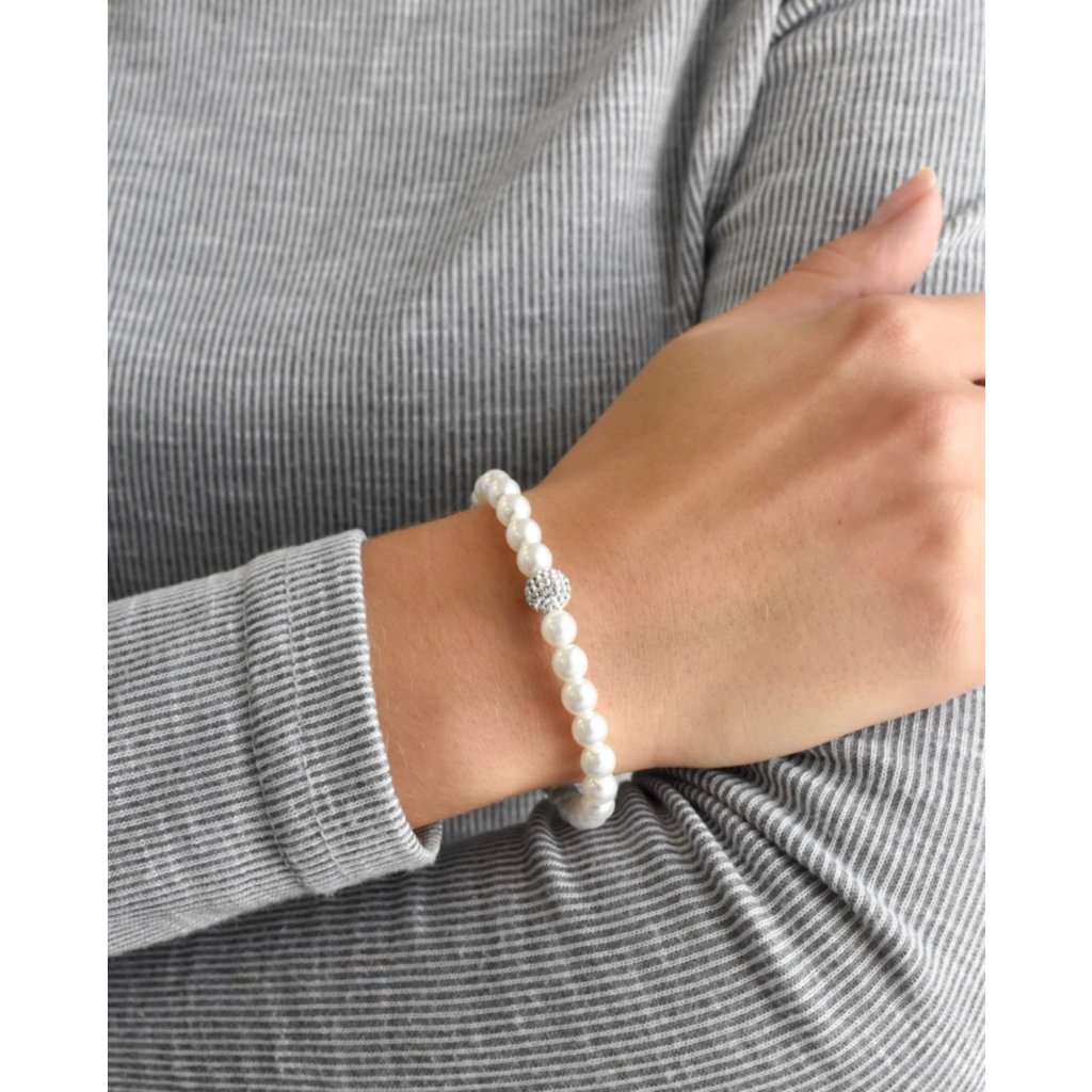 Biele perly pre luxusný dojem z vášho večerného odevu. Krásna je kombinácia s perlovými náušnicami a náhrdelníkom.Perlový náramok 33115.1 v dĺžke 16 cm je poskladaný z malých bielych perál, medzi ktoré je navlečená gulička vysadená mnohými Preciosa kryštáliky v bielej farbe. Náramok je vhodný aj pre alergikov , neobsahuje totiž žiadny nikel.