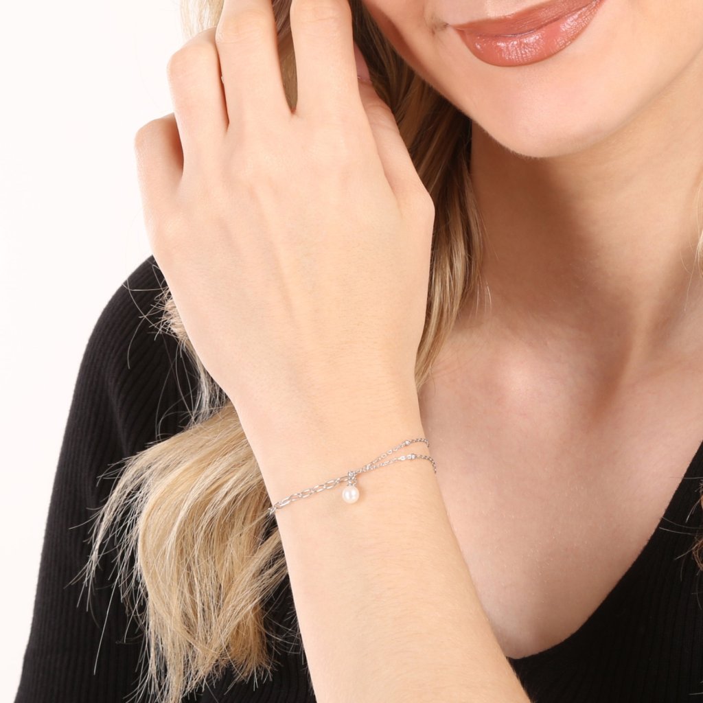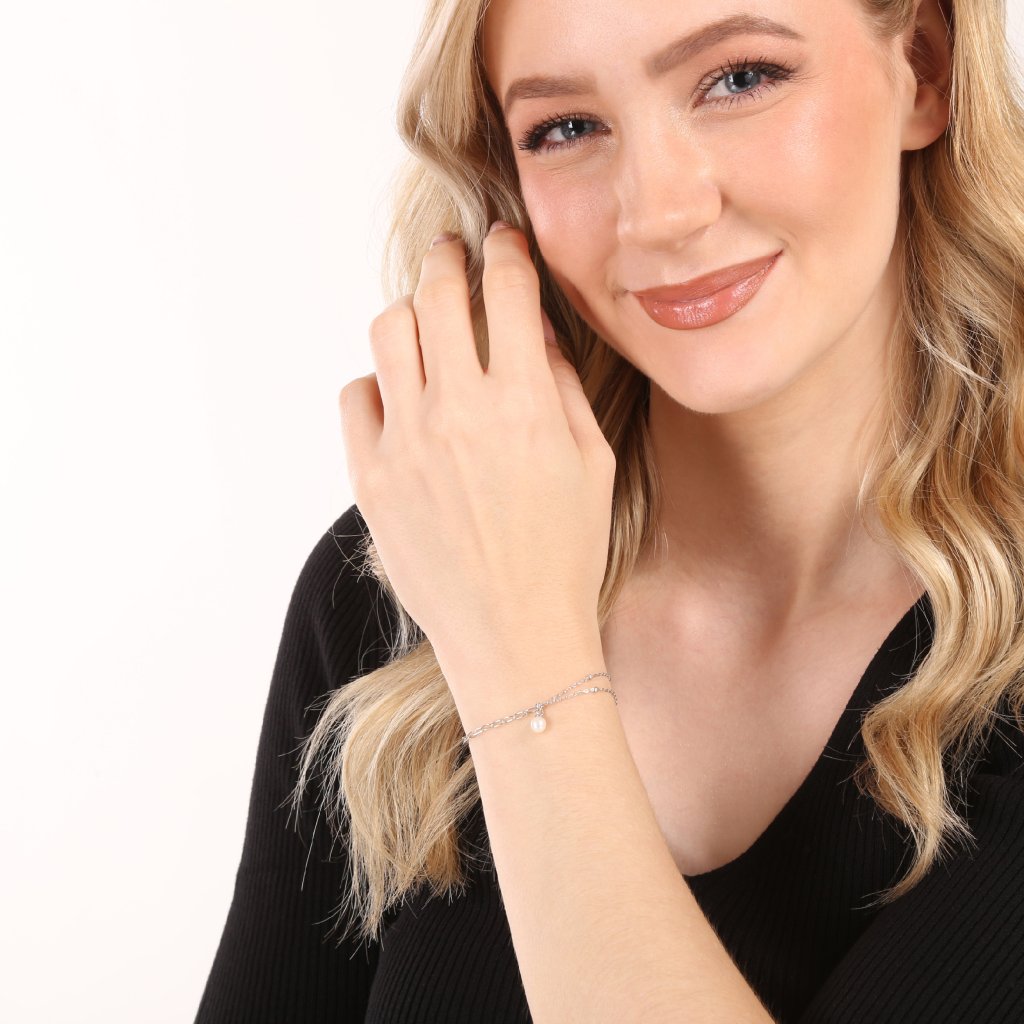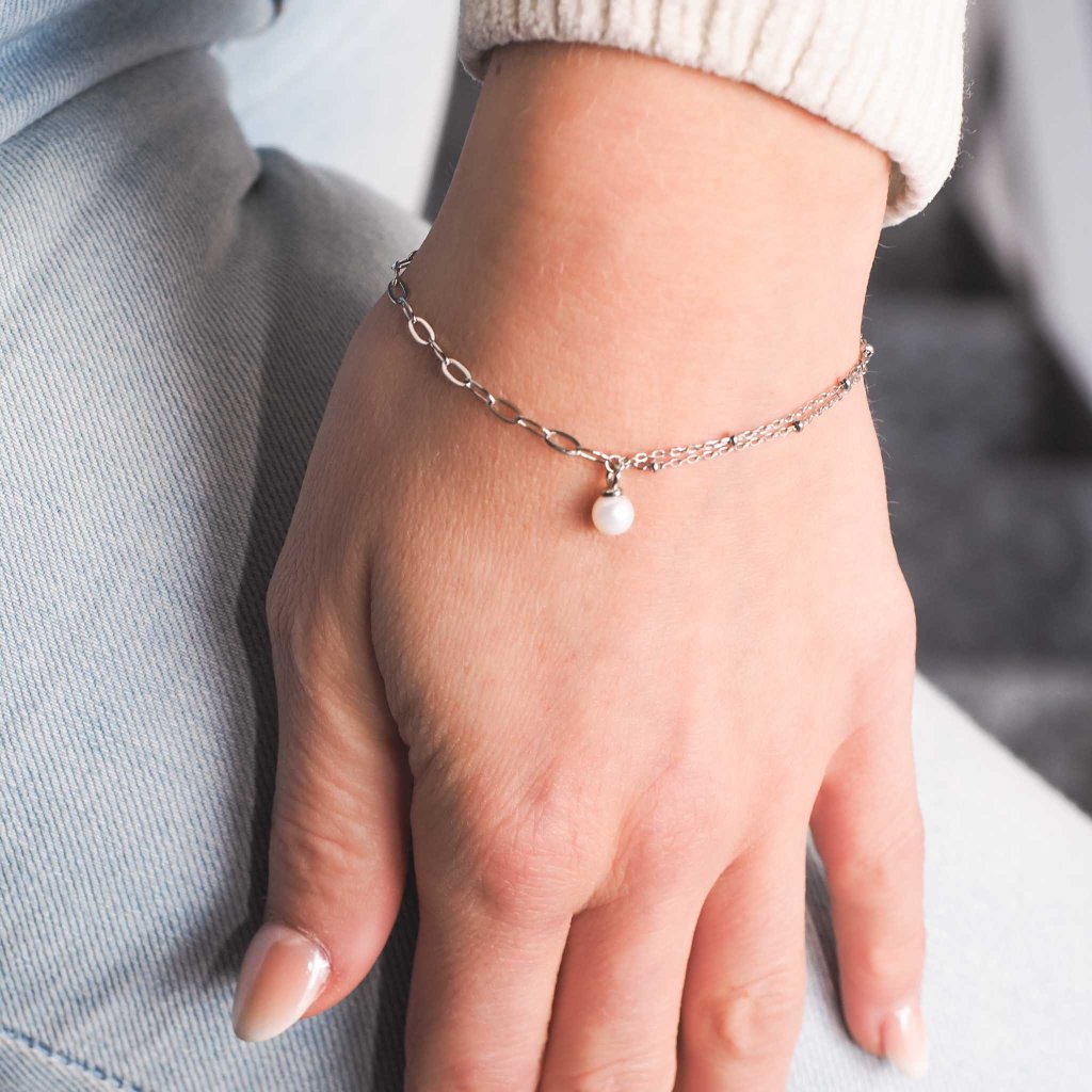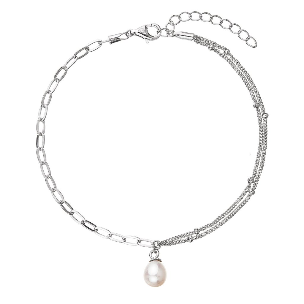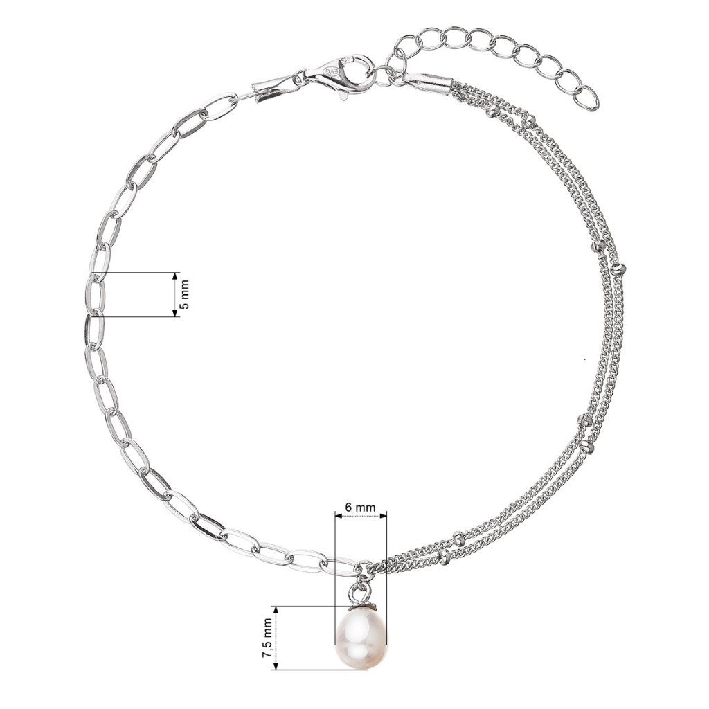 Veľmi moderný strieborný náramok so zavesenou riečnou perlou.Náramok 23014.1 je vyrobený zo striebra rýdzosti 925/1000 , ktoré prešlo povrchovou úpravou ródiom. Ródium chráni šperk proti sčerneniu, zožltnutiu i poškriabaniu. Retiazkový náramok je ozdobený oválnou bielou riečnou perličkou o veľkosti 7,5 x 6 mm a kvality A . Keďže šperk neobsahuje žiadny prídavok niklu , môžu ho bez obáv nosiť aj alergici.