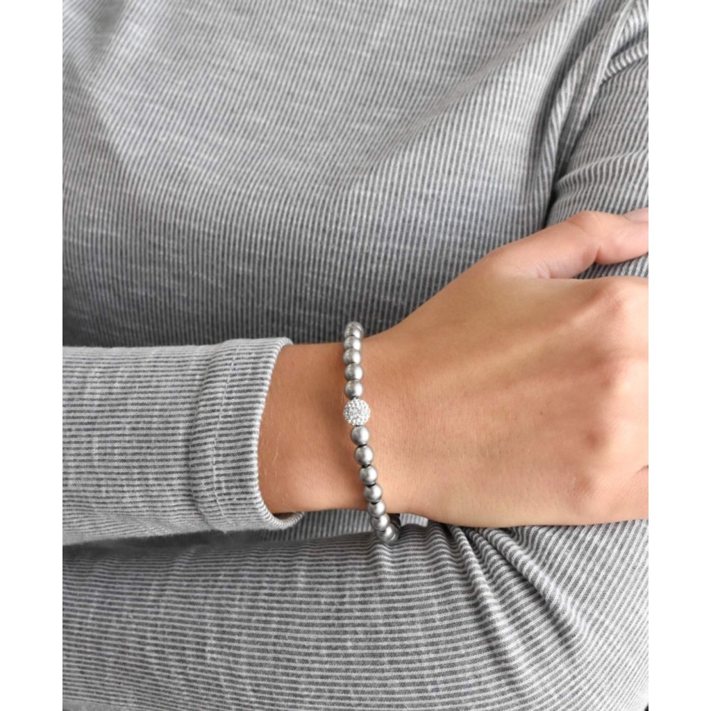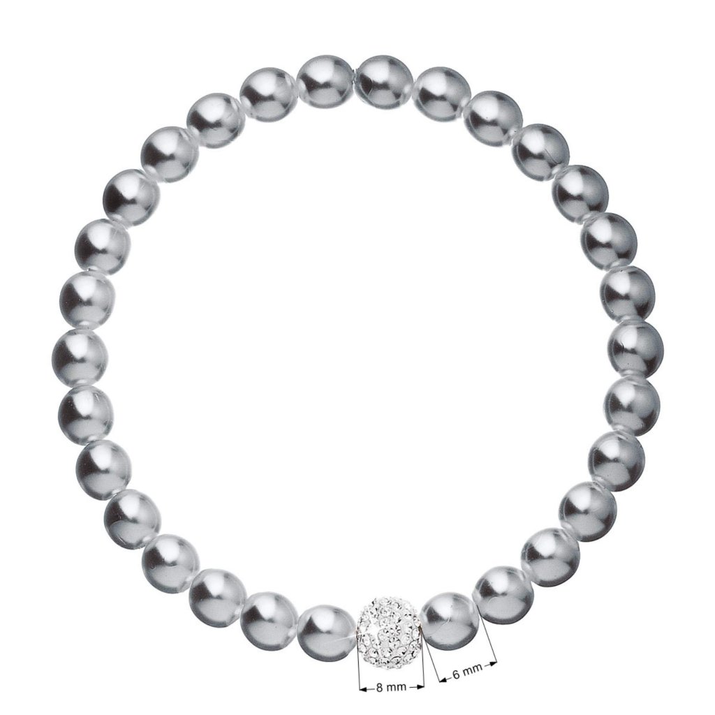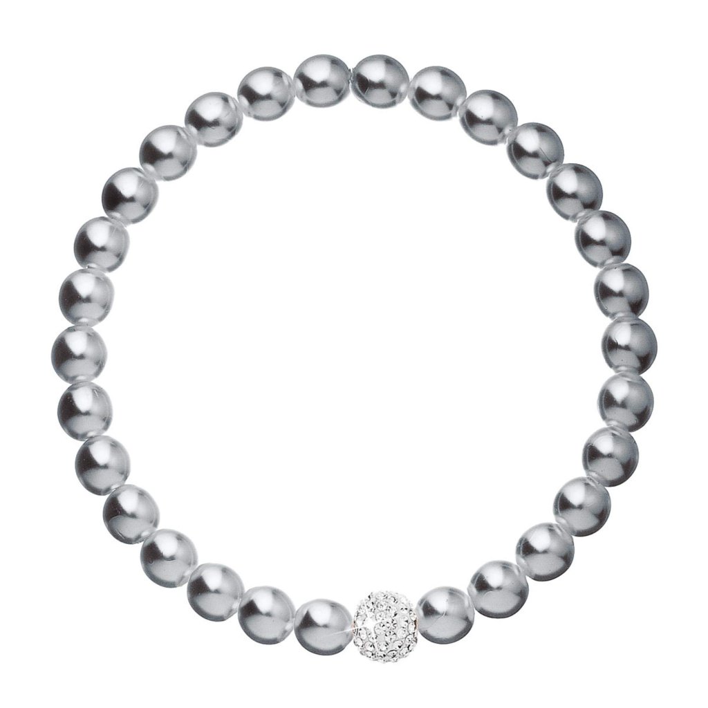 Šedé perly pre luxusný dojem z vášho večerného odevu. Krásna je kombinácia s perlovými náušnicami a náhrdelníkom.Perlový náramok 33115.3 v dĺžke 16 cm je poskladaný z malých šedých perál, medzi ktoré je navlečená gulička vysadená mnohými Preciosa kryštáliky v bielej farbe. Náramok je vhodný aj pre alergikov , neobsahuje totiž žiadny nikel.
