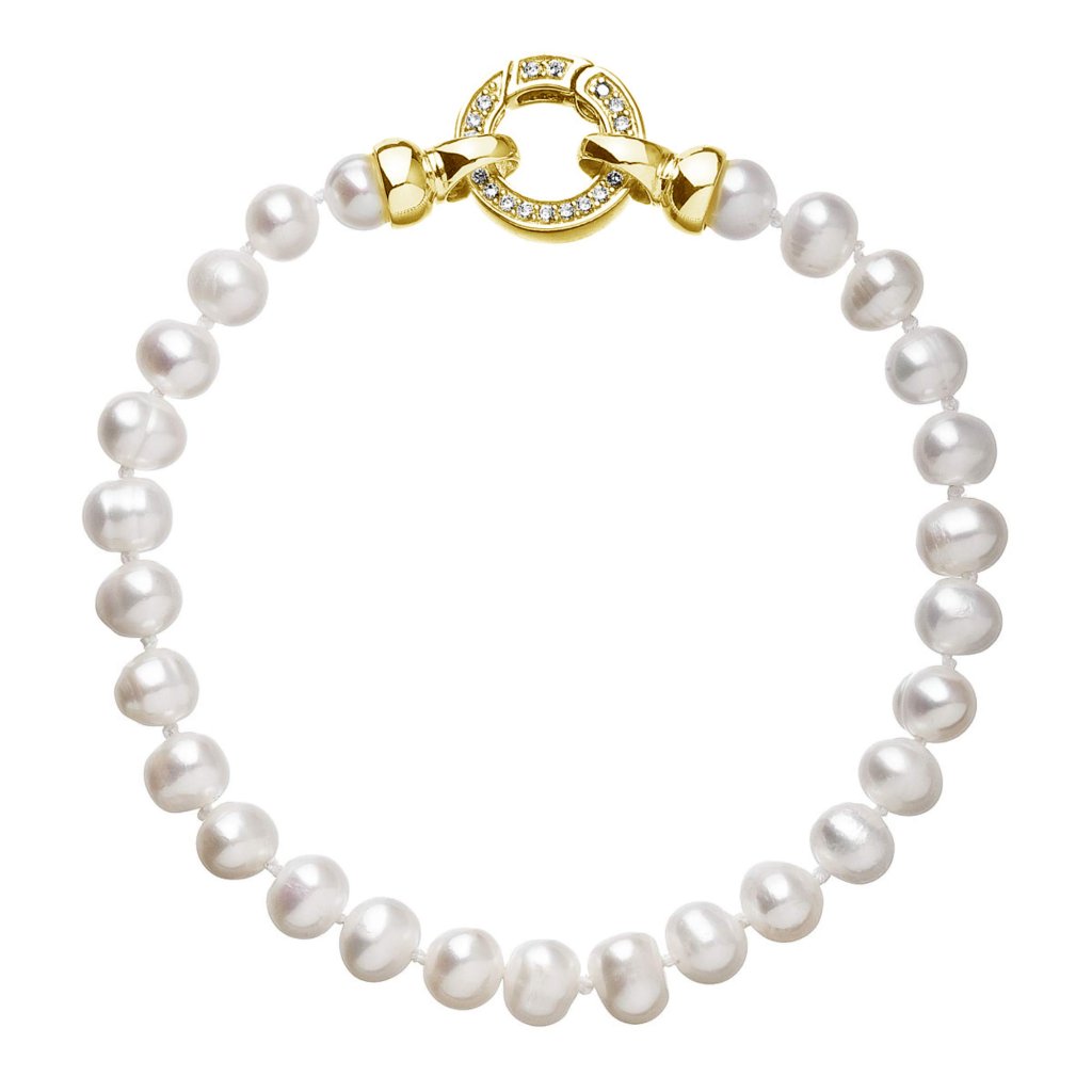Perlový náramok z pravých riečnych perál biely 23001.1 pozlátené zapínanie