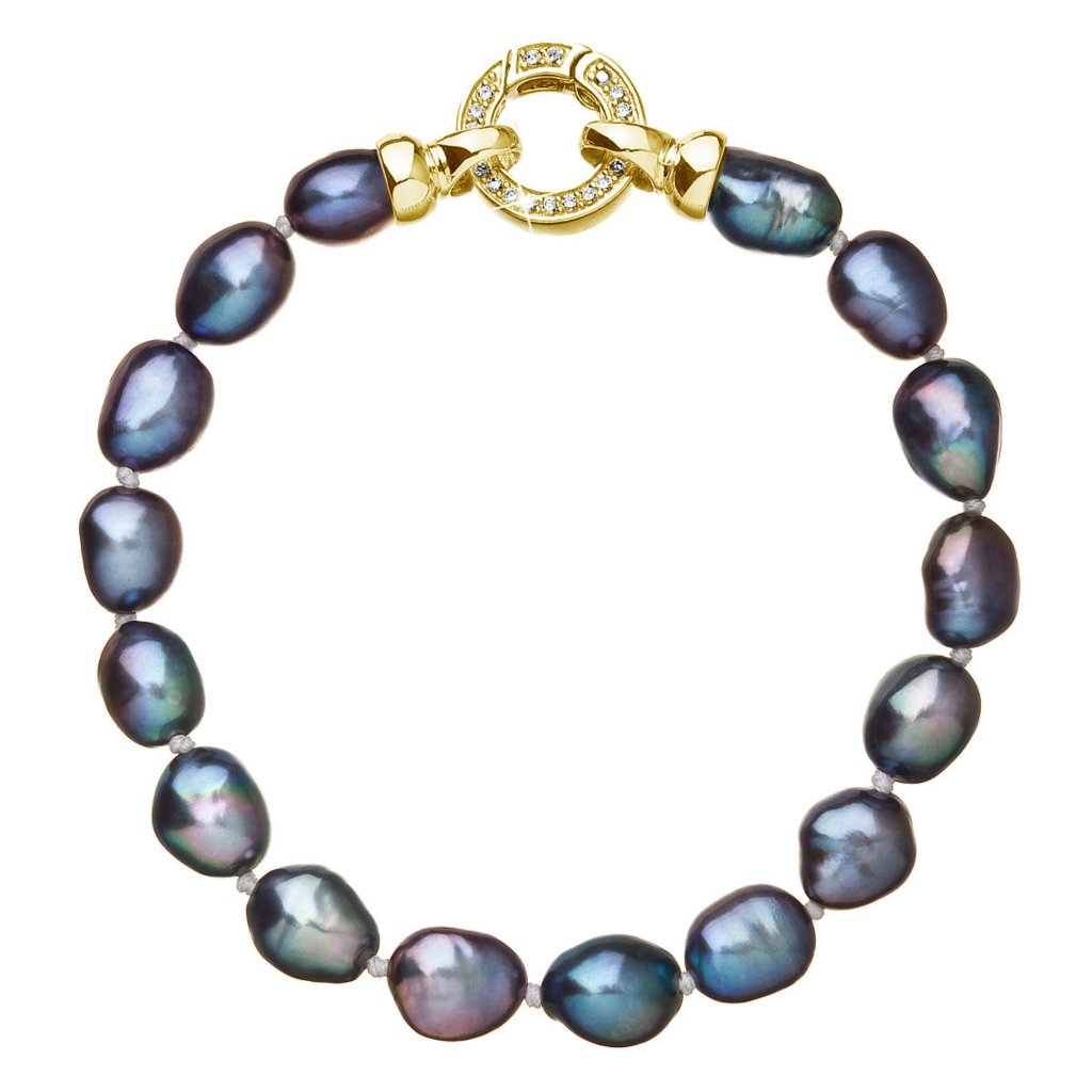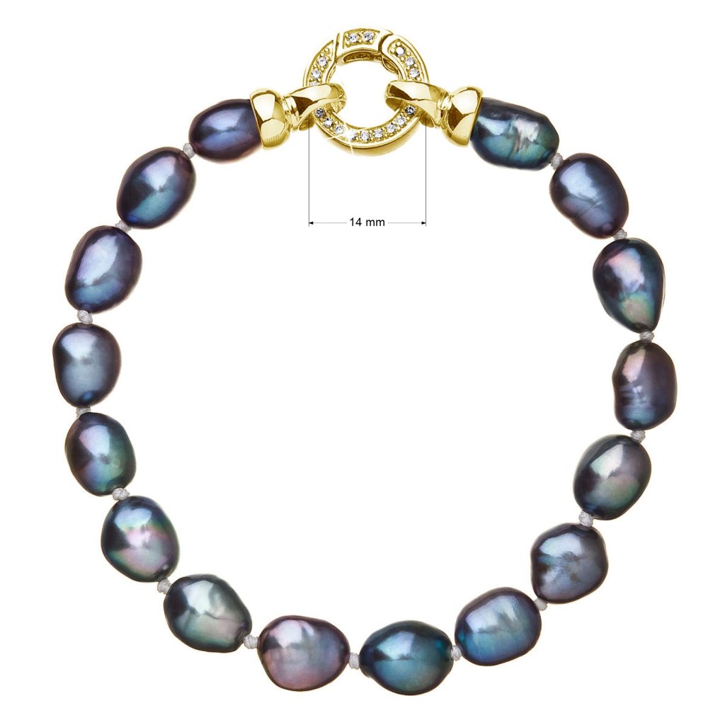 Perlový náramok z pravých riečnych perál modrý 23011.3 peacock pozlátené zapínanie