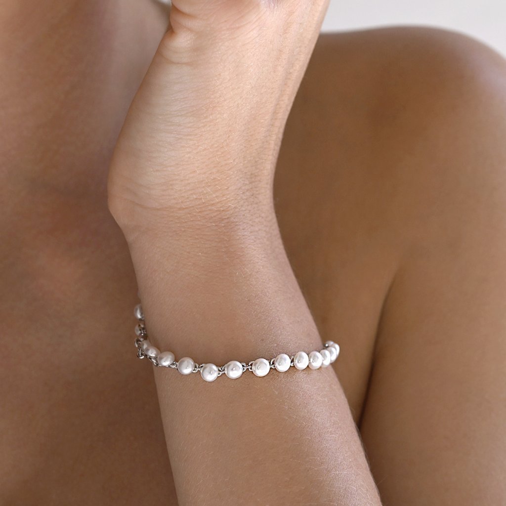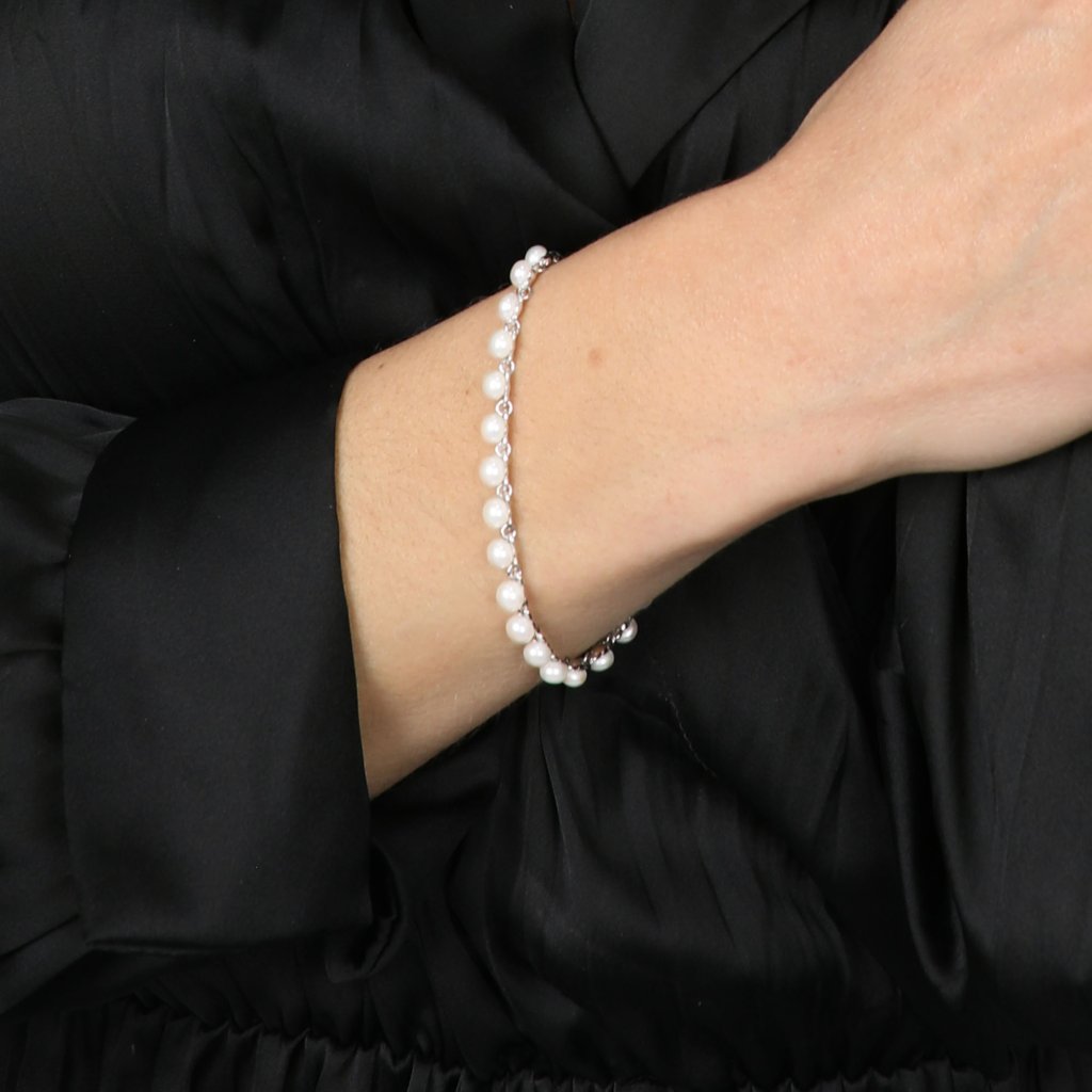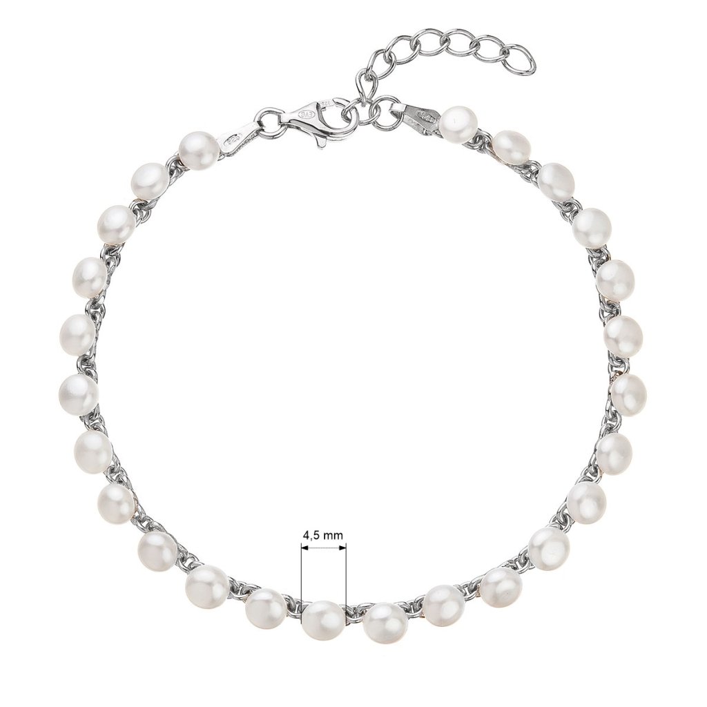 Luxusný perlový náramok dokonale ozdobí Vaše zápästie pri každej slávnosti chvíľu.Náramok 23016.1 je vyrobený zo striebra rýdzosti 925/1000, ktoré prešlo povrchovou úpravou ródiom. Ródium chráni šperk proti sčerneniu, zožltnutiu i poškriabaniu. Pravé riečne perličky, jedna vedľa druhej , na striebornej retiazke pôsobia veľmi luxusne . Perličky majú priemer 4,5 mm a kvalitu A . Keďže šperk neobsahuje žiadny prídavok niklu , môžu ho bez obáv nosiť aj alergici.