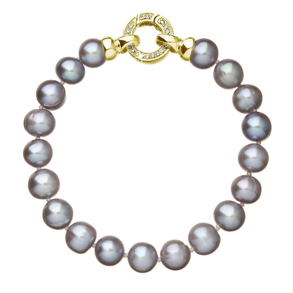 Perlový náramok z pravých riečnych perál šedý 23010.3 grey pozlátené zapínanie