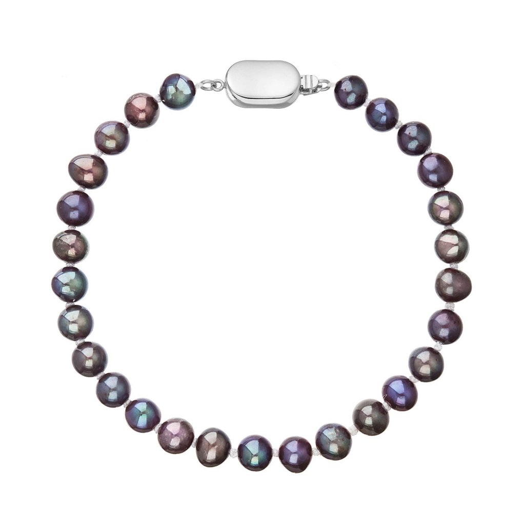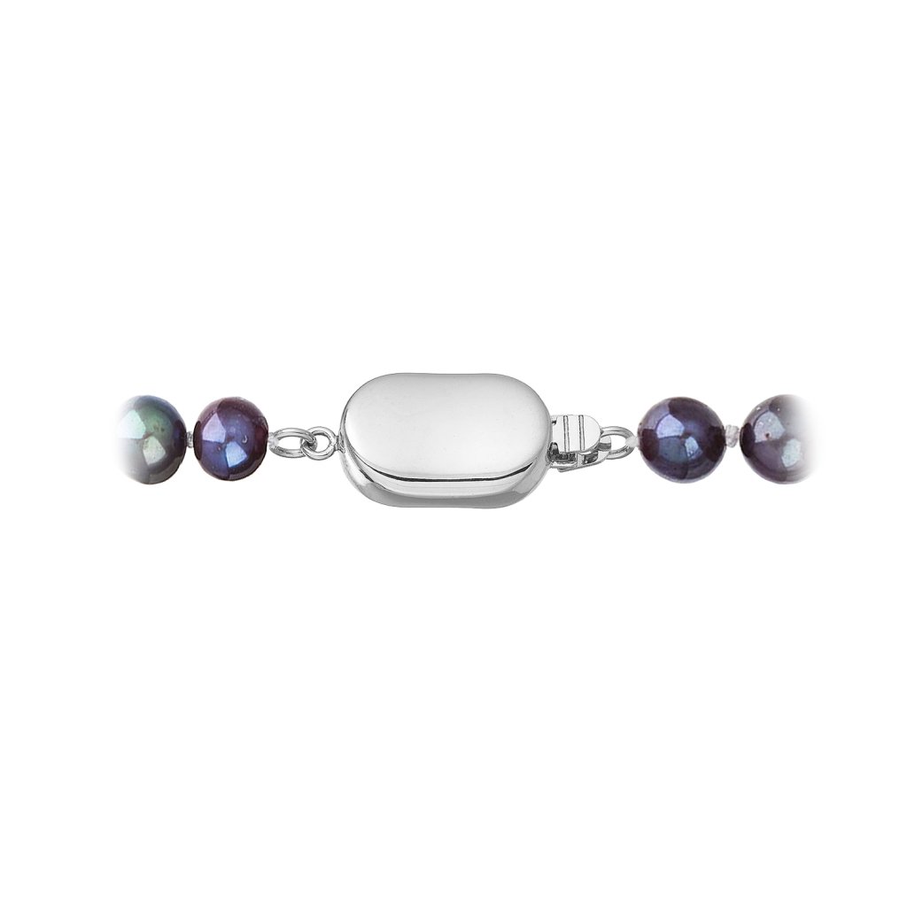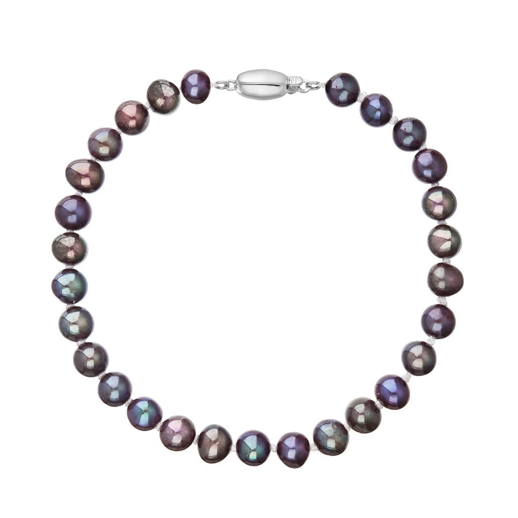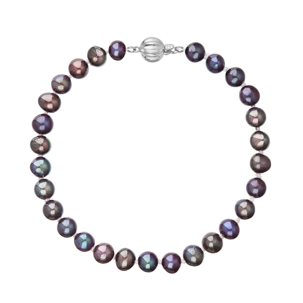 S náramkom z pravých sladkovodných kultivovaných riečnych perál budete v spoločnosti očarujúce! Jedinečný perlový náramok 823001.3 doplnený o zlaté 14 karátové zapínanie bude neprehliadnuteľný. Náramok je navlečený z oválnych pravých riečnych perál kvality B, farba perál je modrofialová dark peacock a je zaistený uzlíkovou väzbou, ktorá zabraňuje posúvaniu a poškodeniu perál trením o seba a rovnako chráni perly pred rozsypaním, pokiaľ sa náramok náhodou pretrhne.