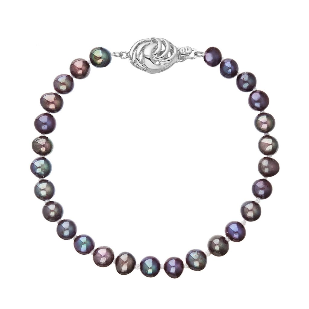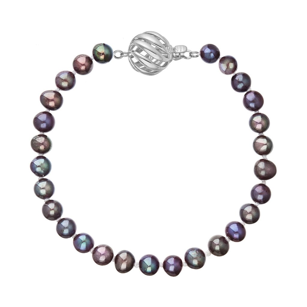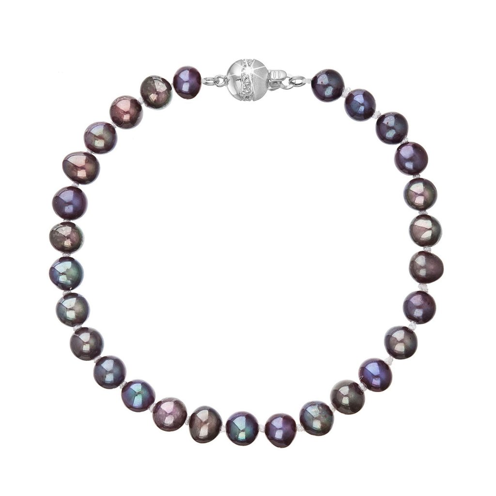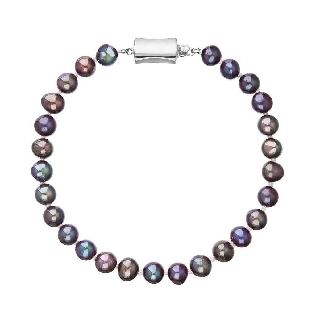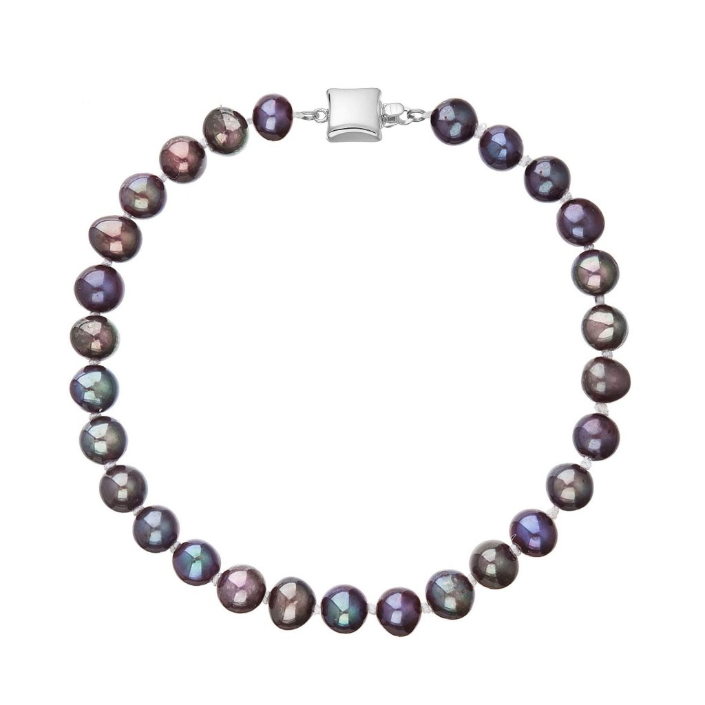 S náramkom z pravých sladkovodných kultivovaných riečnych perál budete v spoločnosti očarujúce! Jedinečný perlový náramok 823001.3 doplnený o zlaté 14 karátové zapínanie bude neprehliadnuteľný. Náramok je navlečený z oválnych pravých riečnych perál kvality B, farba perál je modrofialová dark peacock a je zaistený uzlíkovou väzbou, ktorá zabraňuje posúvaniu a poškodeniu perál trením o seba a rovnako chráni perly pred rozsypaním, pokiaľ sa náramok náhodou pretrhne.