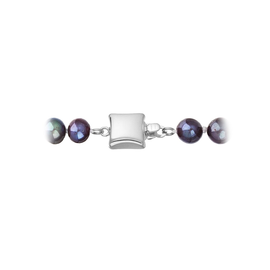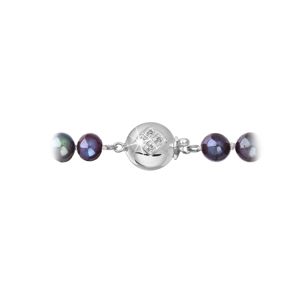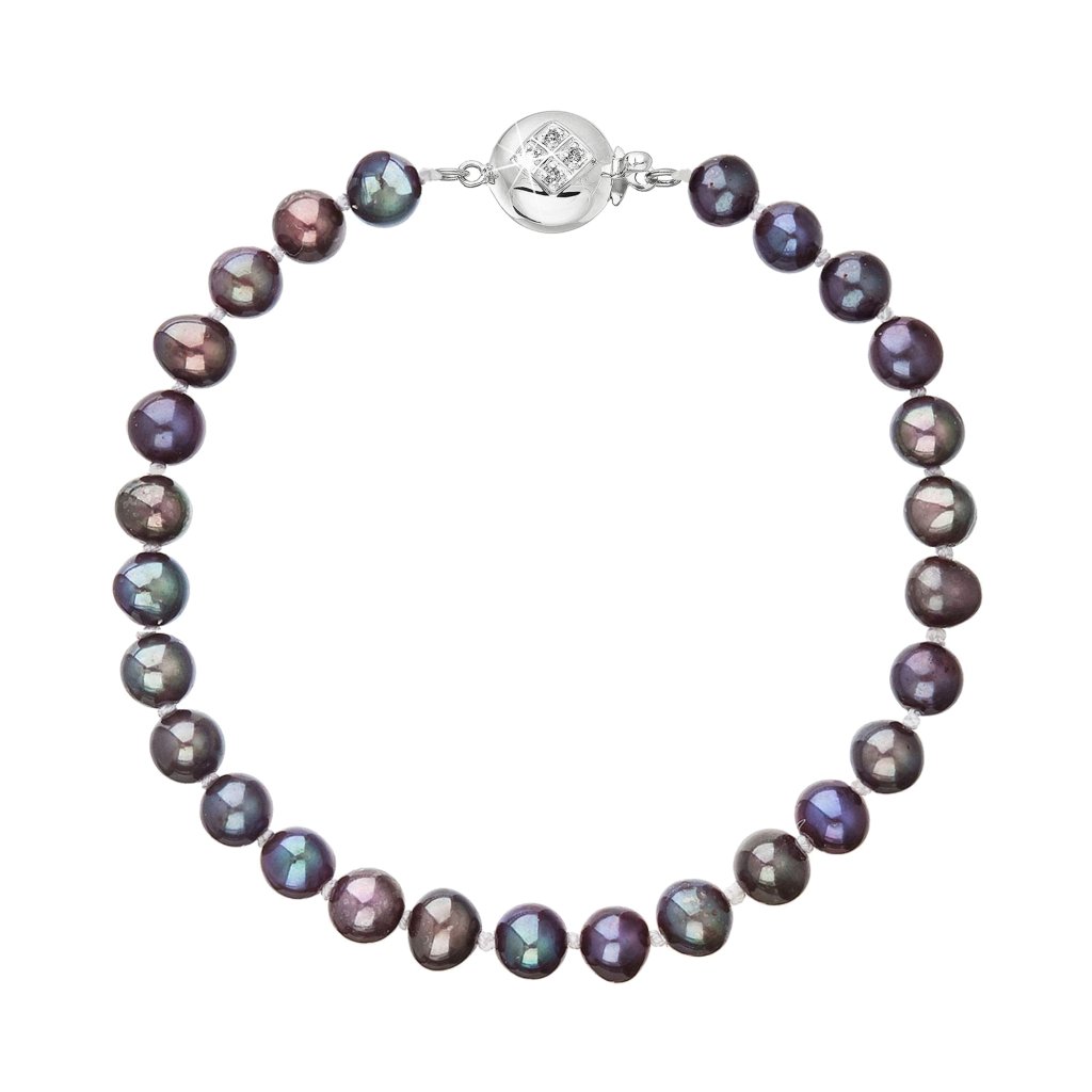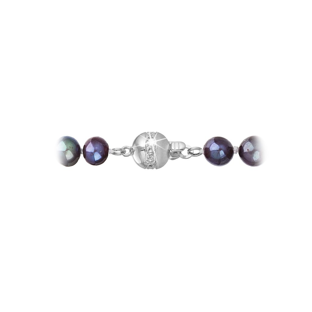 S náramkom z pravých sladkovodných kultivovaných riečnych perál budete v spoločnosti očarujúce! Jedinečný perlový náramok 823001.3 doplnený o zlaté 14 karátové zapínanie bude neprehliadnuteľný. Náramok je navlečený z oválnych pravých riečnych perál kvality B, farba perál je modrofialová dark peacock a je zaistený uzlíkovou väzbou, ktorá zabraňuje posúvaniu a poškodeniu perál trením o seba a rovnako chráni perly pred rozsypaním, pokiaľ sa náramok náhodou pretrhne.