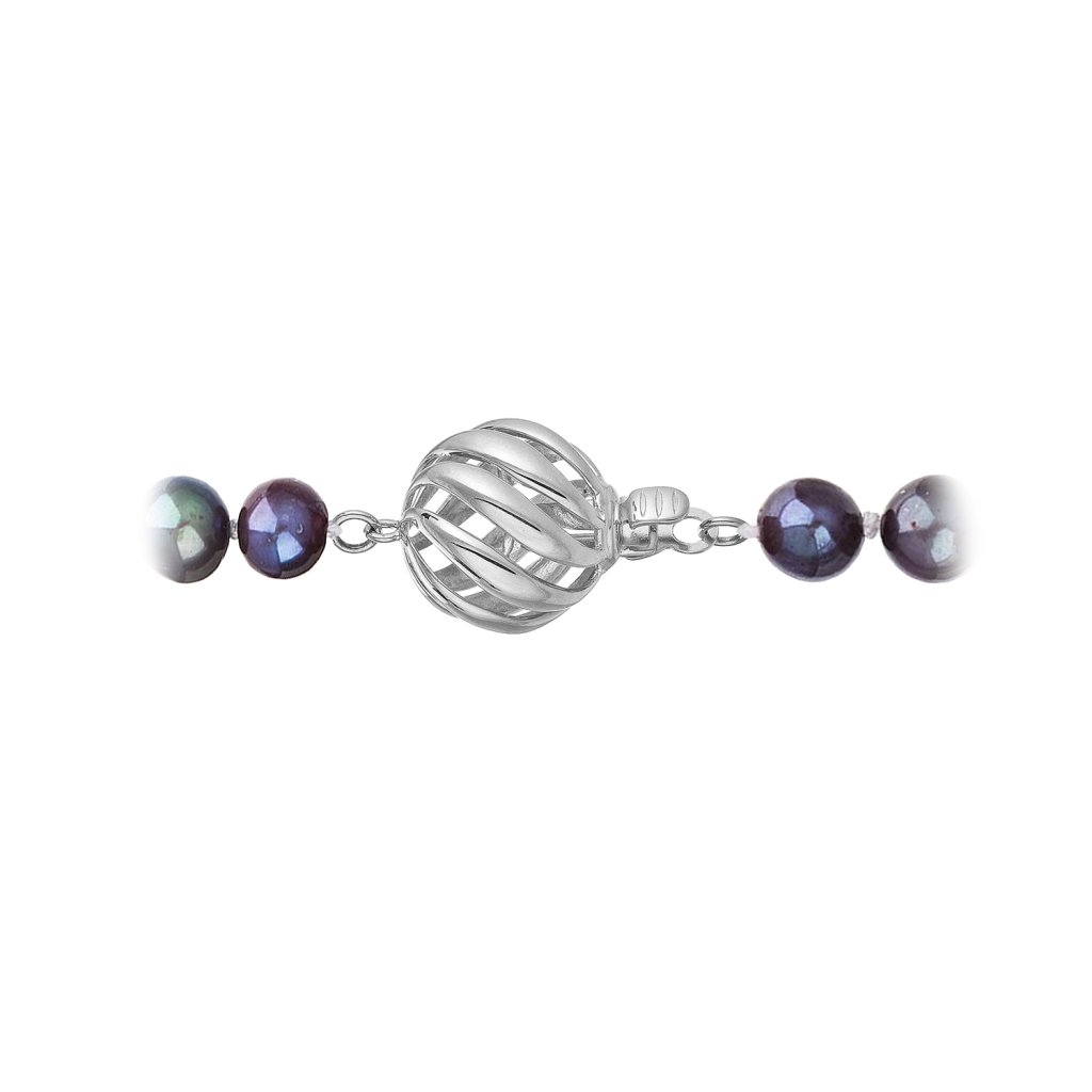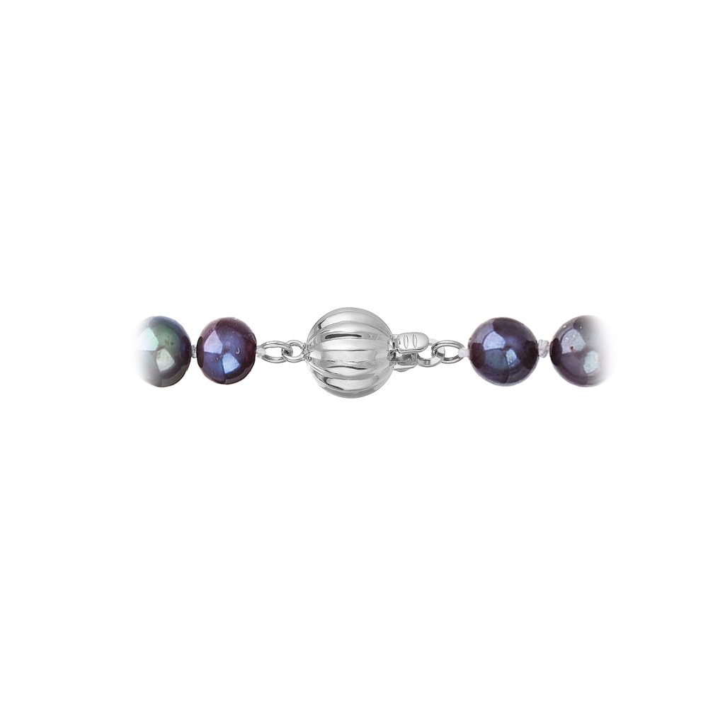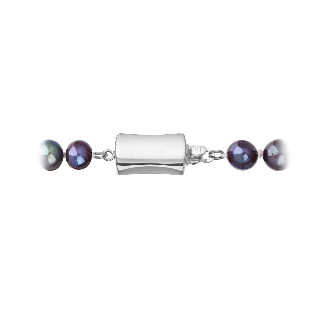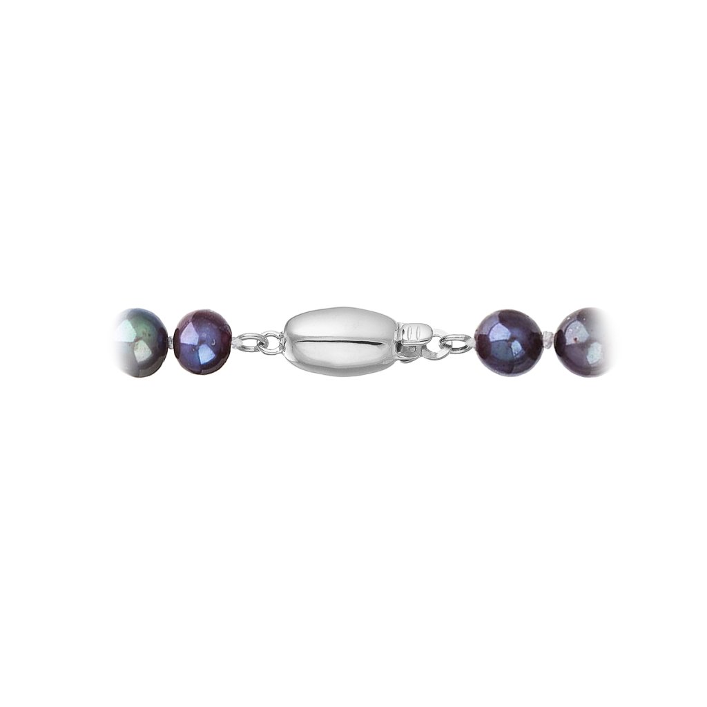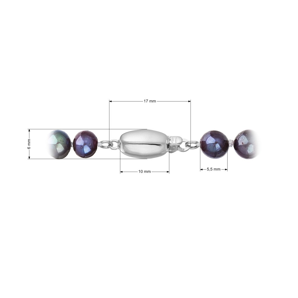 S náramkom z pravých sladkovodných kultivovaných riečnych perál budete v spoločnosti očarujúce! Jedinečný perlový náramok 823001.3 doplnený o zlaté 14 karátové zapínanie bude neprehliadnuteľný. Náramok je navlečený z oválnych pravých riečnych perál kvality B, farba perál je modrofialová dark peacock a je zaistený uzlíkovou väzbou, ktorá zabraňuje posúvaniu a poškodeniu perál trením o seba a rovnako chráni perly pred rozsypaním, pokiaľ sa náramok náhodou pretrhne.