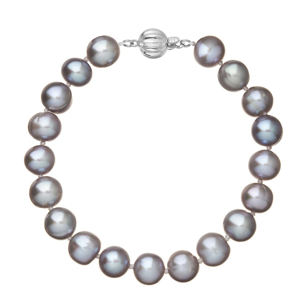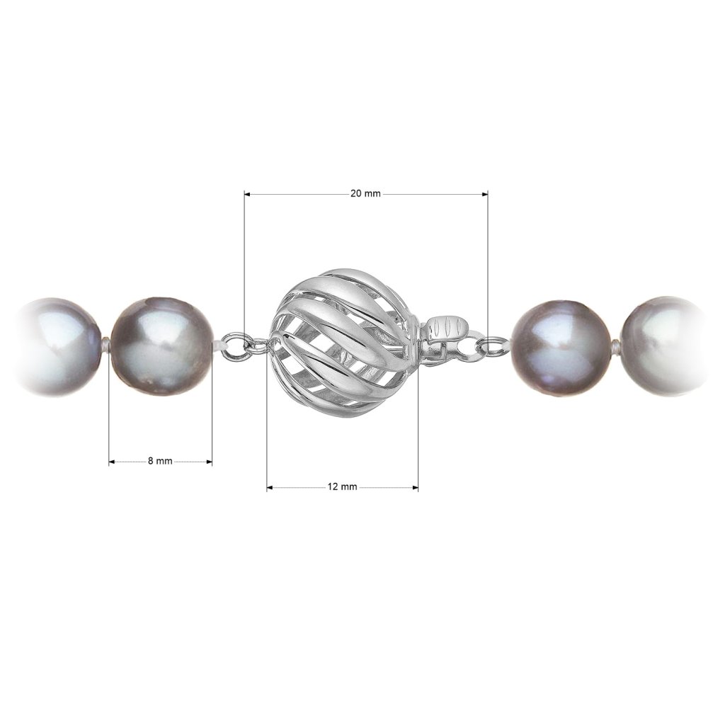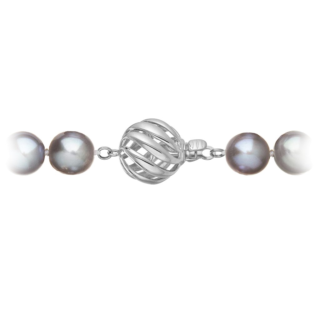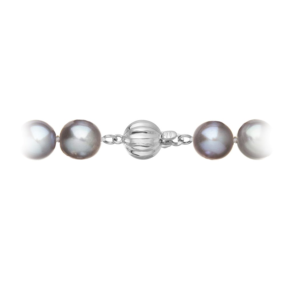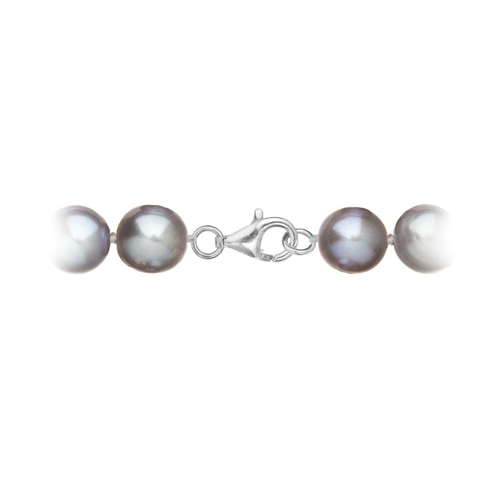 S náramkom z pravých sladkovodných kultivovaných riečnych perál budete v spoločnosti očarujúce! Jedinečný perlový náramok 823010.3 doplnený o zlaté 14 karátové zapínanie bude neprehliadnuteľný. Náramok je navlečený z okrúhlych pravých riečnych perál v šedých odtieňoch, kvality A a je zaistený uzlíkovou väzbou, ktorá zabraňuje posúvaniu a poškodeniu perál trením o seba a rovnako chráni perly pred rozsypaním, pokiaľ sa náramok náhodou pretrhne.