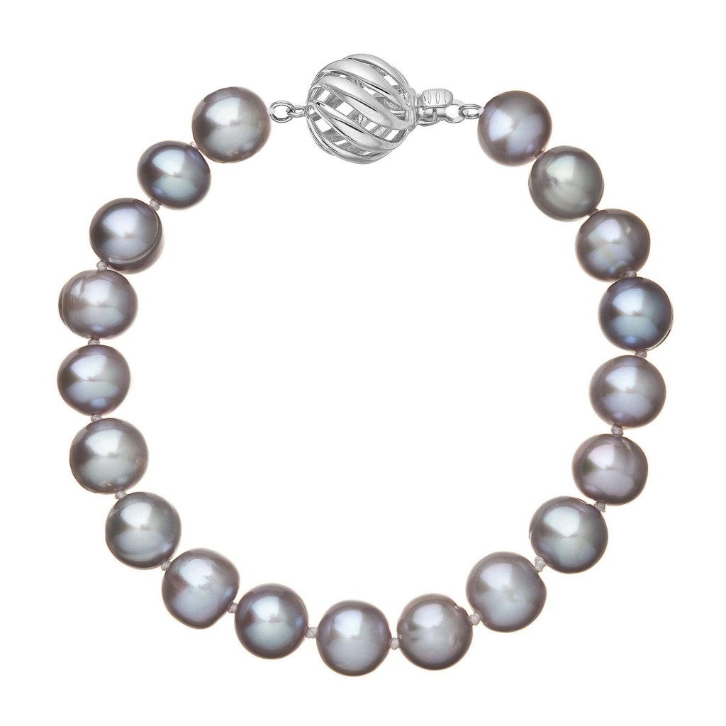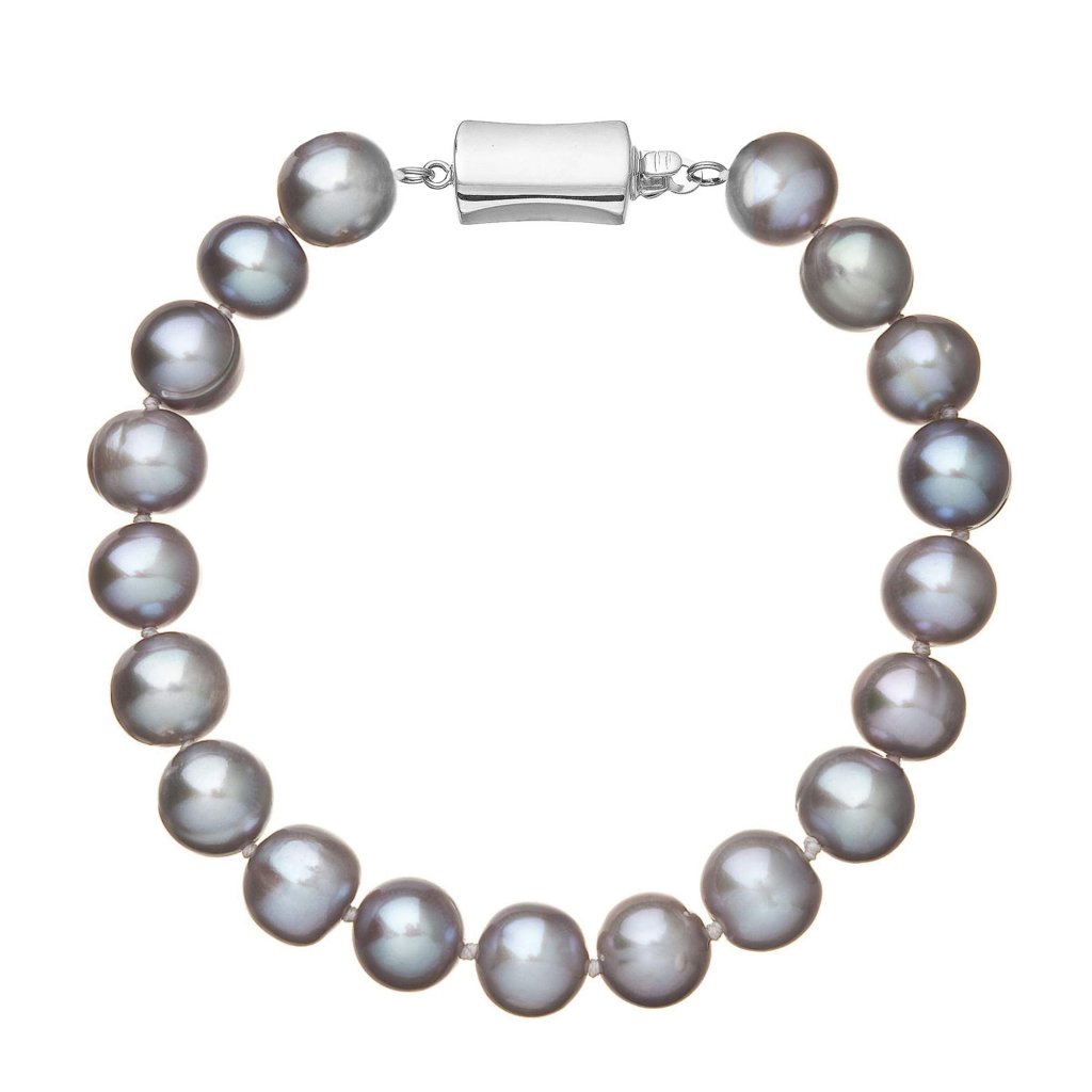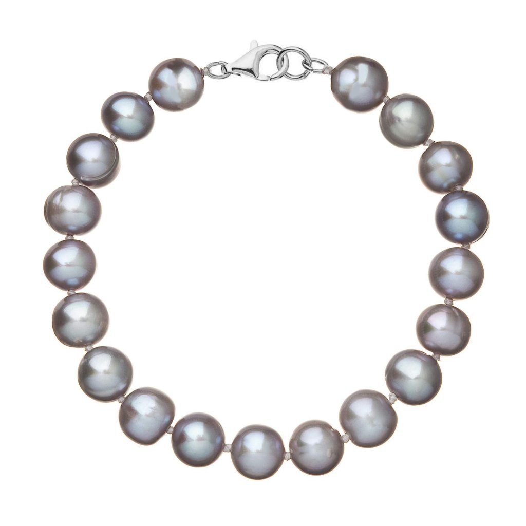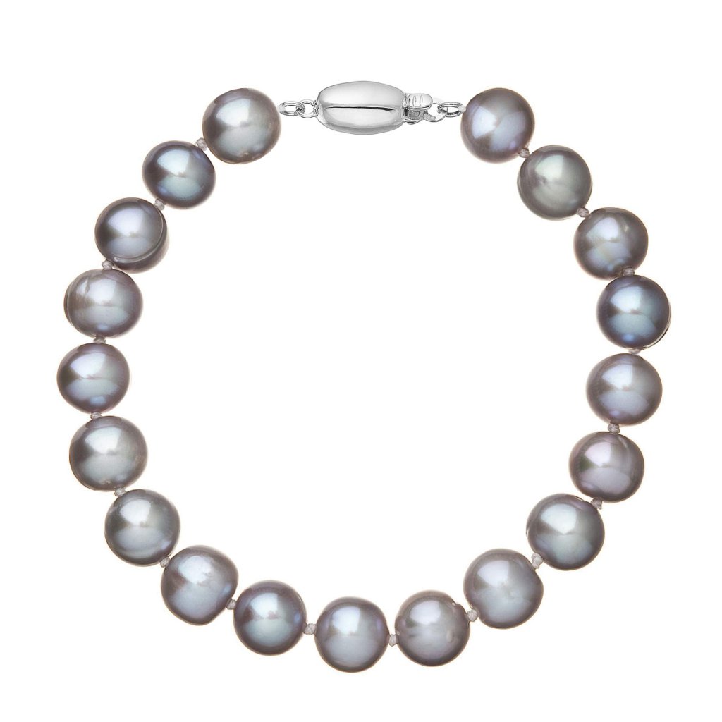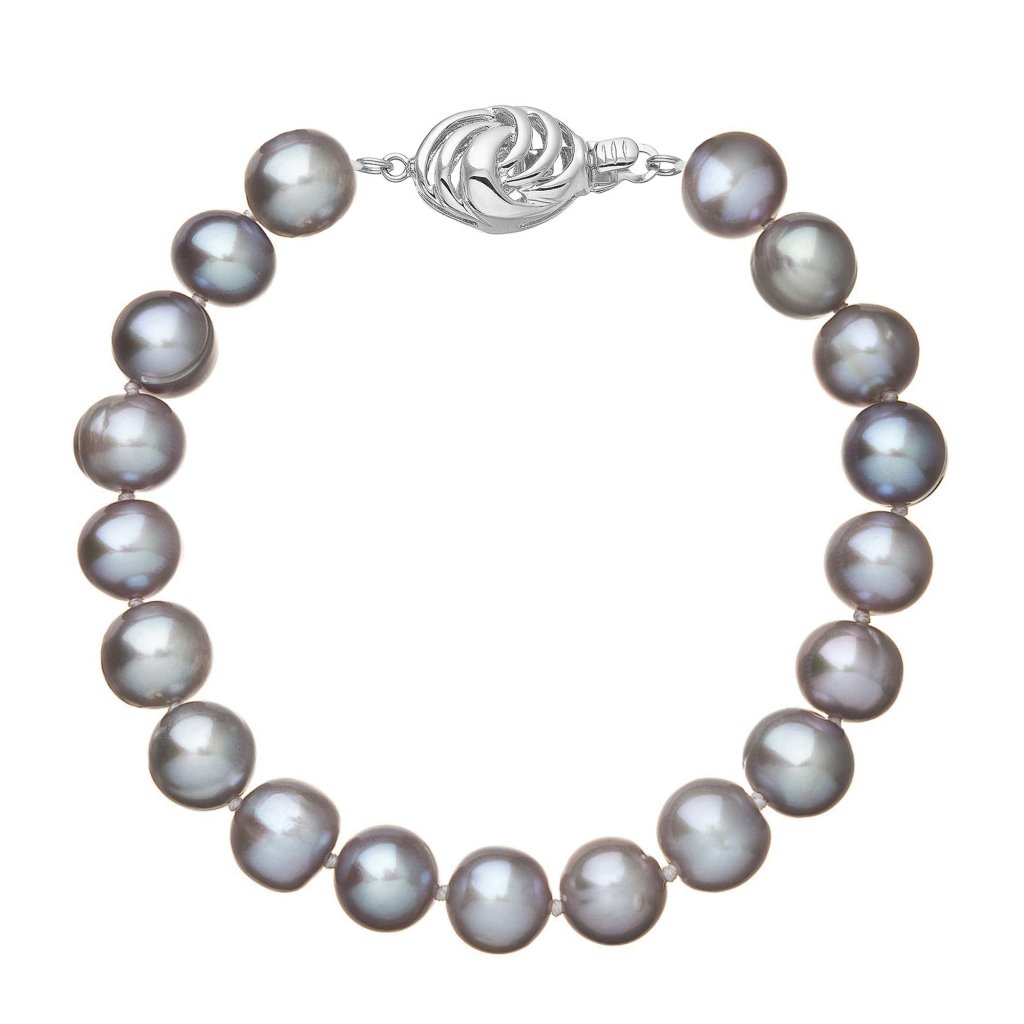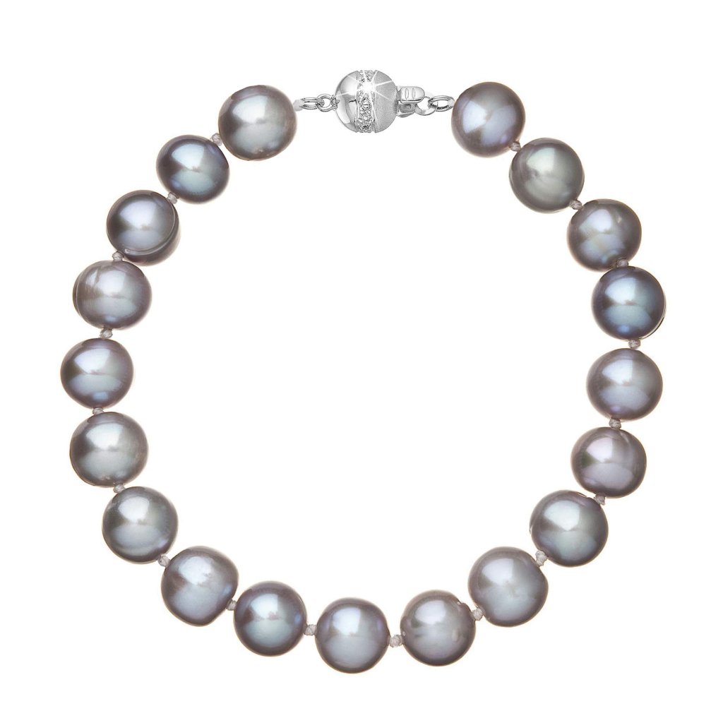 S náramkom z pravých sladkovodných kultivovaných riečnych perál budete v spoločnosti očarujúce! Jedinečný perlový náramok 823010.3 doplnený o zlaté 14 karátové zapínanie bude neprehliadnuteľný. Náramok je navlečený z okrúhlych pravých riečnych perál v šedých odtieňoch, kvality A a je zaistený uzlíkovou väzbou, ktorá zabraňuje posúvaniu a poškodeniu perál trením o seba a rovnako chráni perly pred rozsypaním, pokiaľ sa náramok náhodou pretrhne.