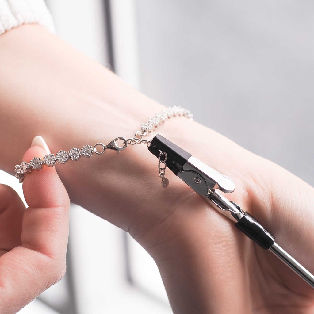 Pomôcka na zapínanie náramkov je užitočný nástroj, ktorý zjednodušuje manipuláciu pri nasadzovaní a zapínaní náramkov jednou rukou. Tento praktický doplnok je vyrobený z odolného plastu a nerezovej ocele a má ergonomický dizajn, vďaka čomu pevne drží náramok na mieste, zatiaľ čo ho jednoducho zapnete. Je ideálny na každodenné použitie, šetrí čas a eliminuje nutnosť asistencie pri zapínaní náramkov. Vhodný je pre všetky typy náramkov s rôznymi druhmi zapínania, čo ocenia najmä milovníci šperkov.