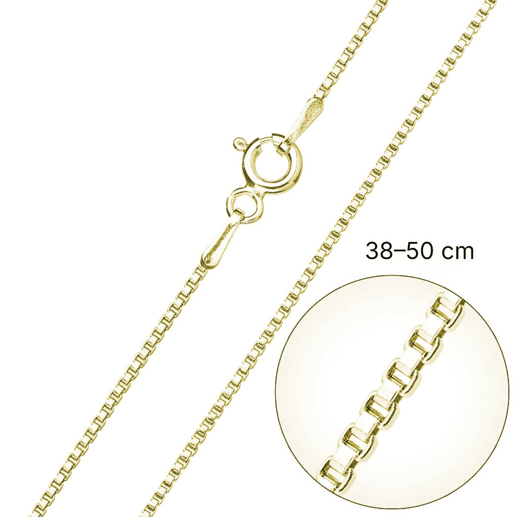 Pozlátená strieborná retiazka 30014 je vyrobená zo striebra rýdzosti 925/1000 vrátane povrchového zlatenia. Je kockového tvaru a ponúkame ho v týchto dĺžkach: 38 cm, 42 cm, 45 cm, 50 cm, priemer retiazky je 1,05 mm.