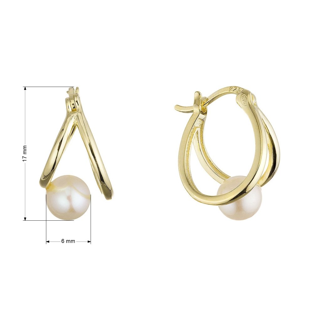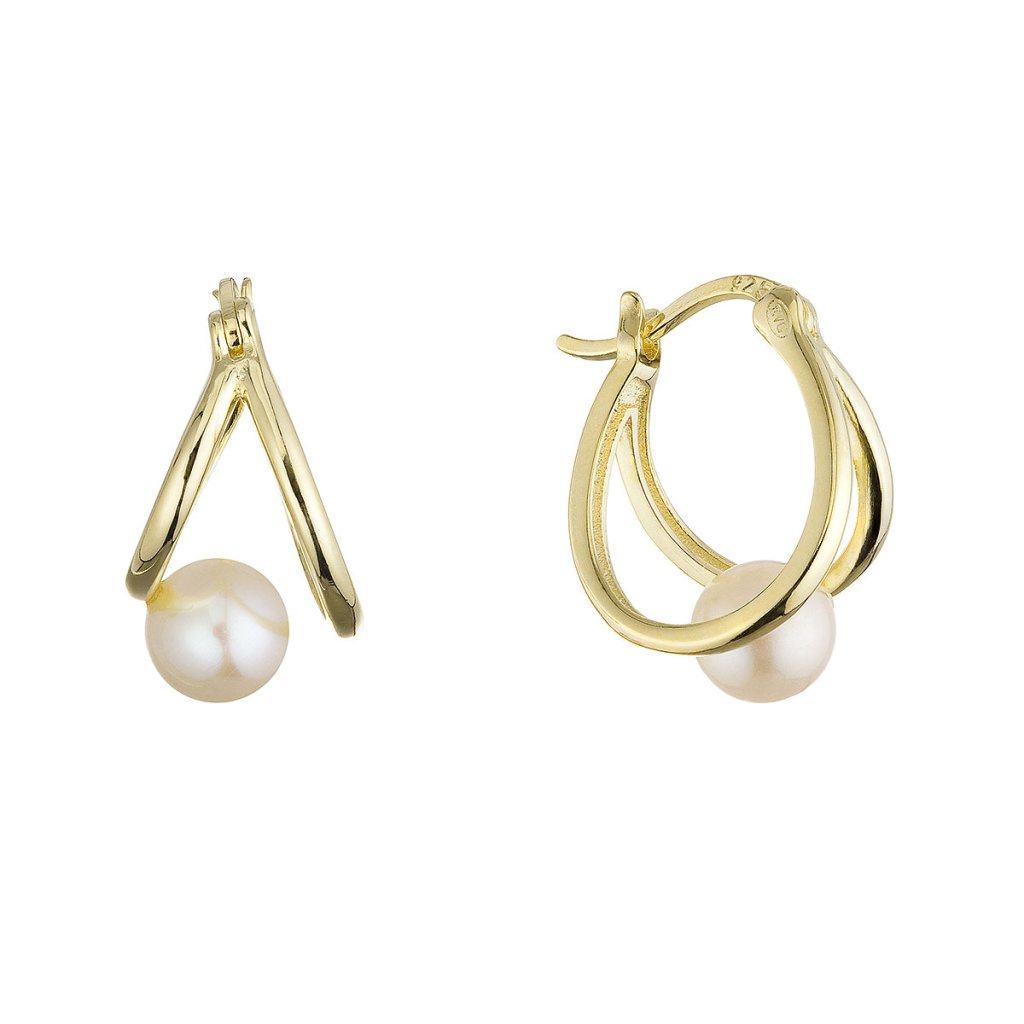 Pozlátené náušnice kruhy s bielou riečnou perlou 21130.1