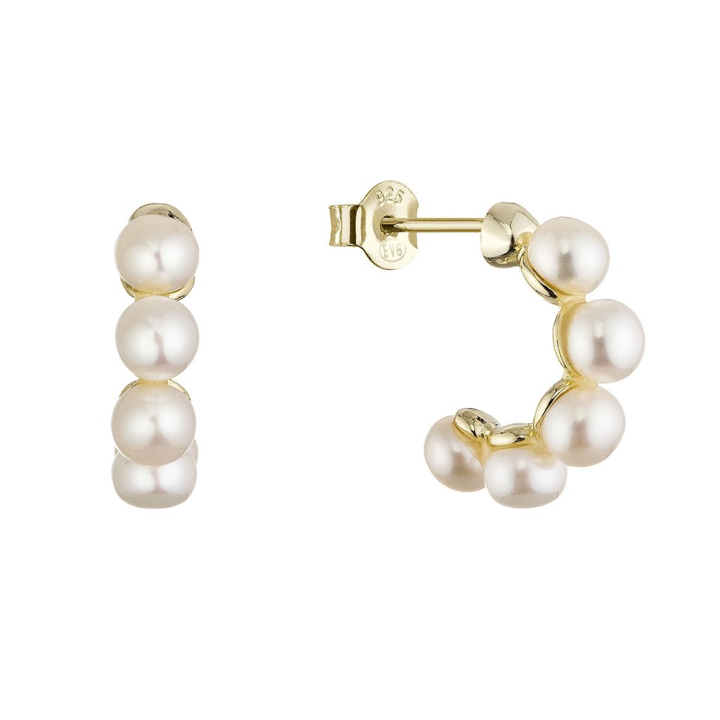 Pozlátené náušnice kruhy s bielymi riečnymi perlami 21131.1