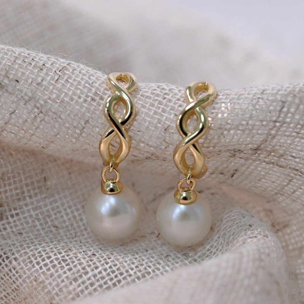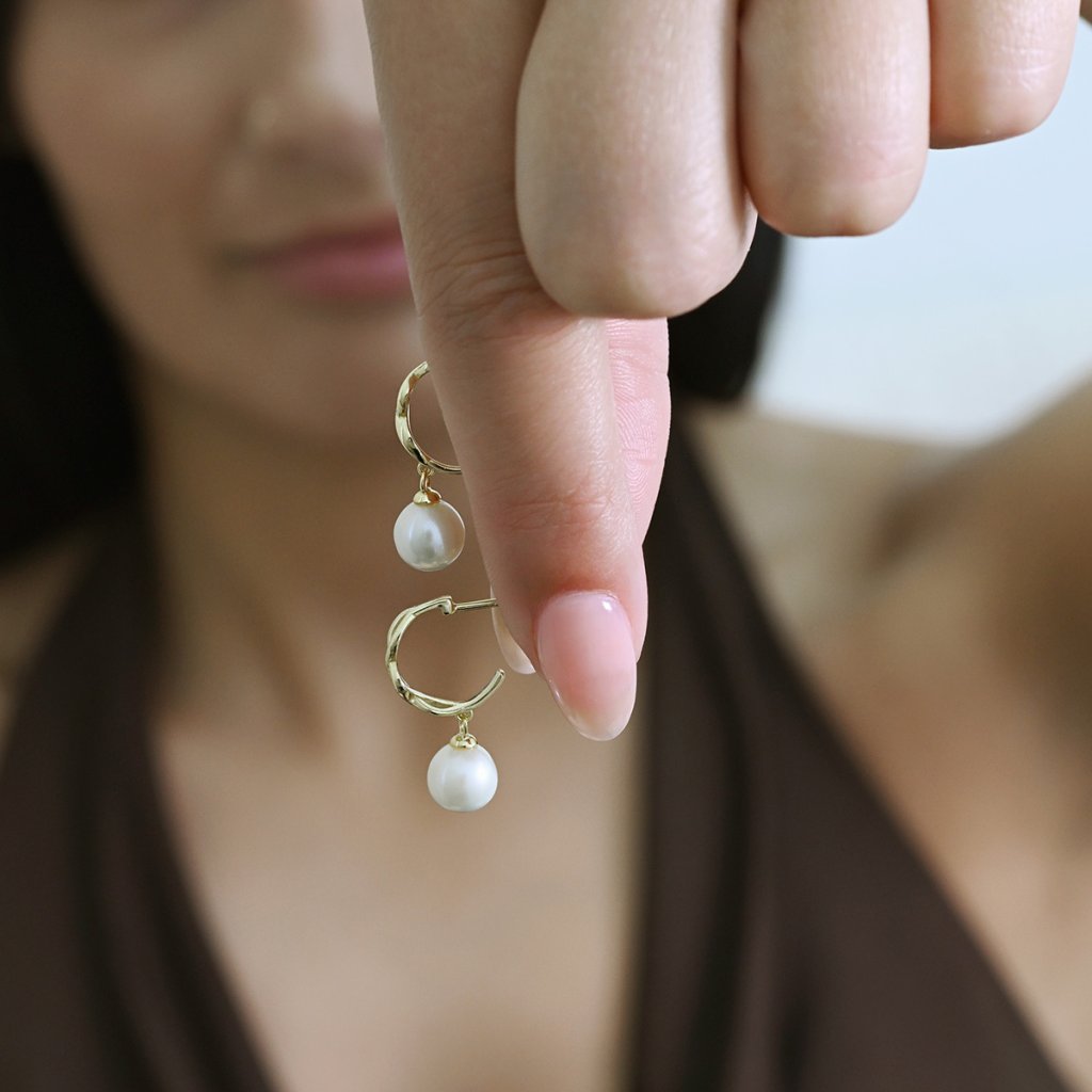 Pozlátené náušnice kruhy so zavesenou riečnou perlou 21125.1